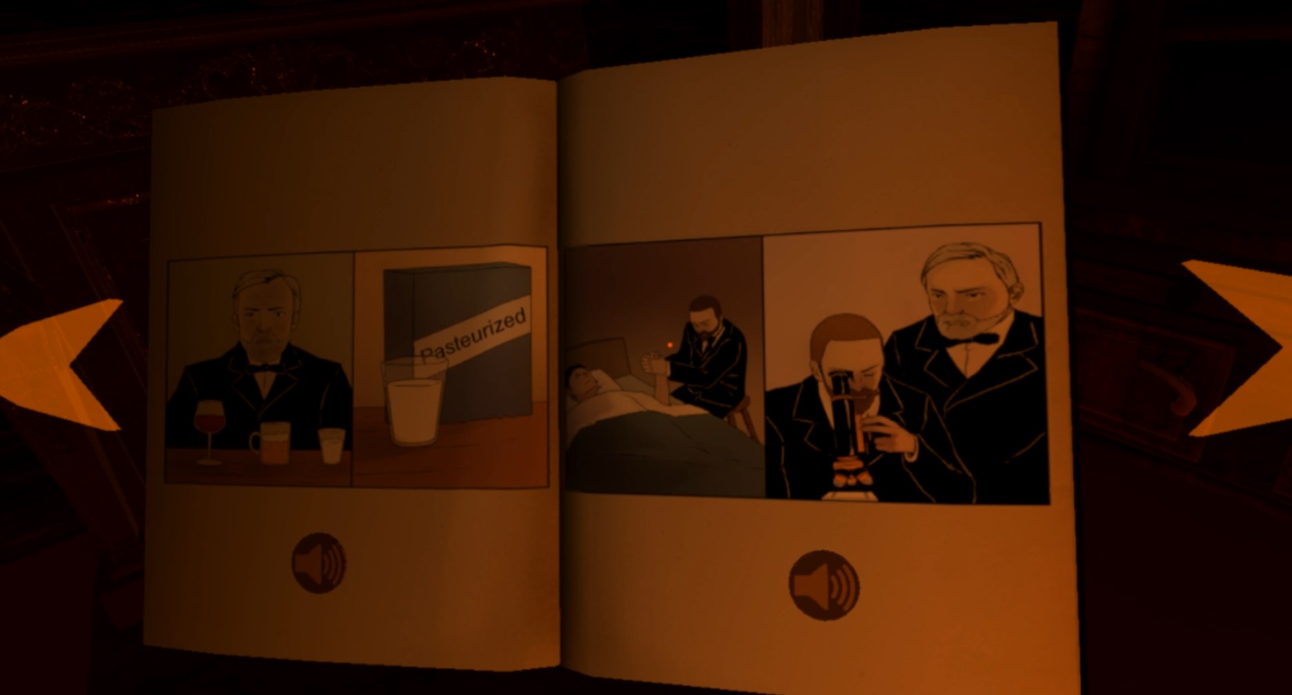 When was the last time you sat down and read a virtual reality comic book? Never? Well, two of the pioneers in biochemistry, Pasteur and Roux, have an amazing story of discovery that is told through the pages of a virtual comic book (by the way, when you’re in the comic book room, be sure to adjust the radio to the station you want to listen to).