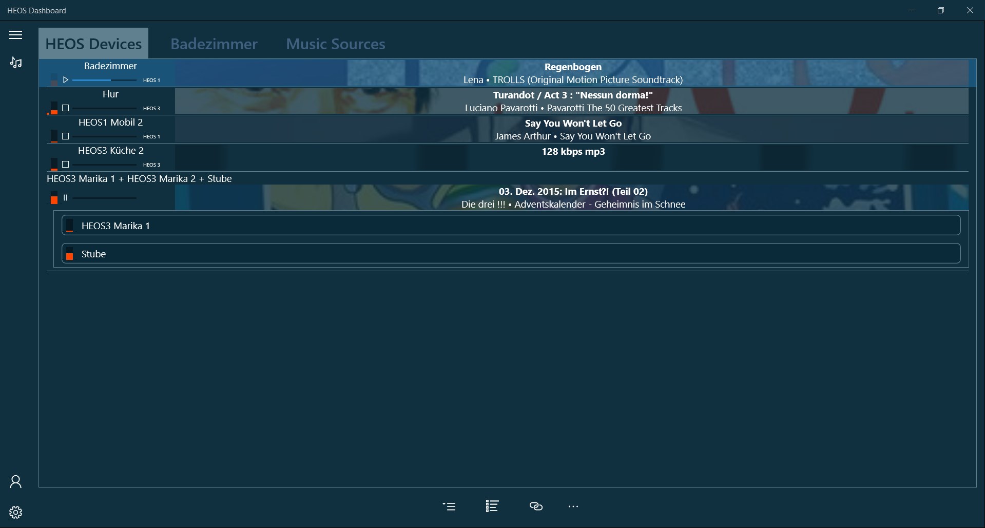 - Group by HEOS devices (single, multiple and all devices at once)