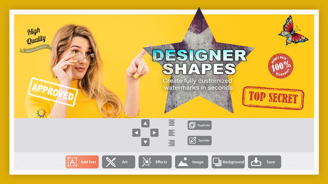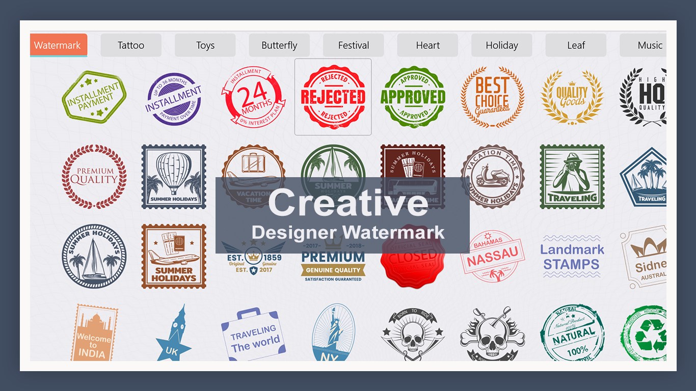 - Create watermark in seconds with editable text, color, size, rotation, backgrounds and more.