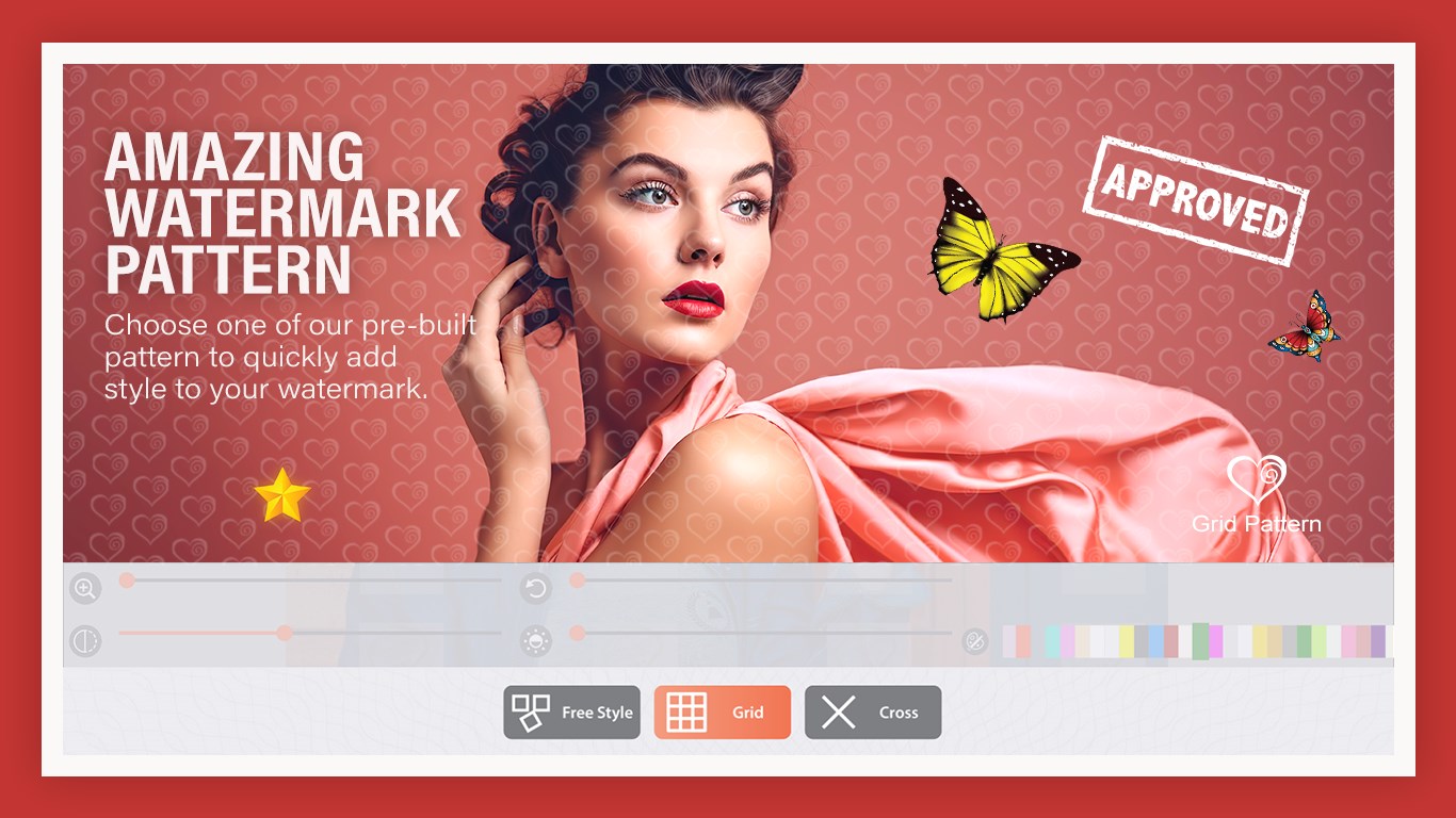 - Cross Pattern: Your custom watermarks can be crossed with your watermark in the middle.