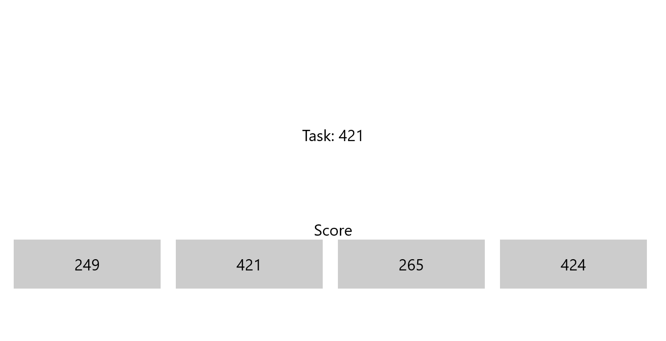 The program is a great way to develop your brain. The application differs from others in its simplicity and ease of use, since during development this was a key investment in the program. The user must press the button with the same number as written in the task. The correct answer will be rated at 100 points.