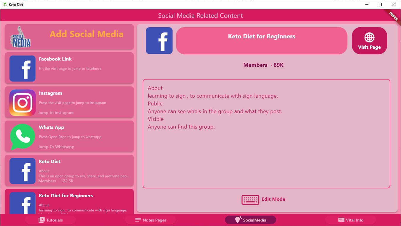 Maintain your personalized, one-tap social media links to access your favourite keto groups or sites effortlessly.