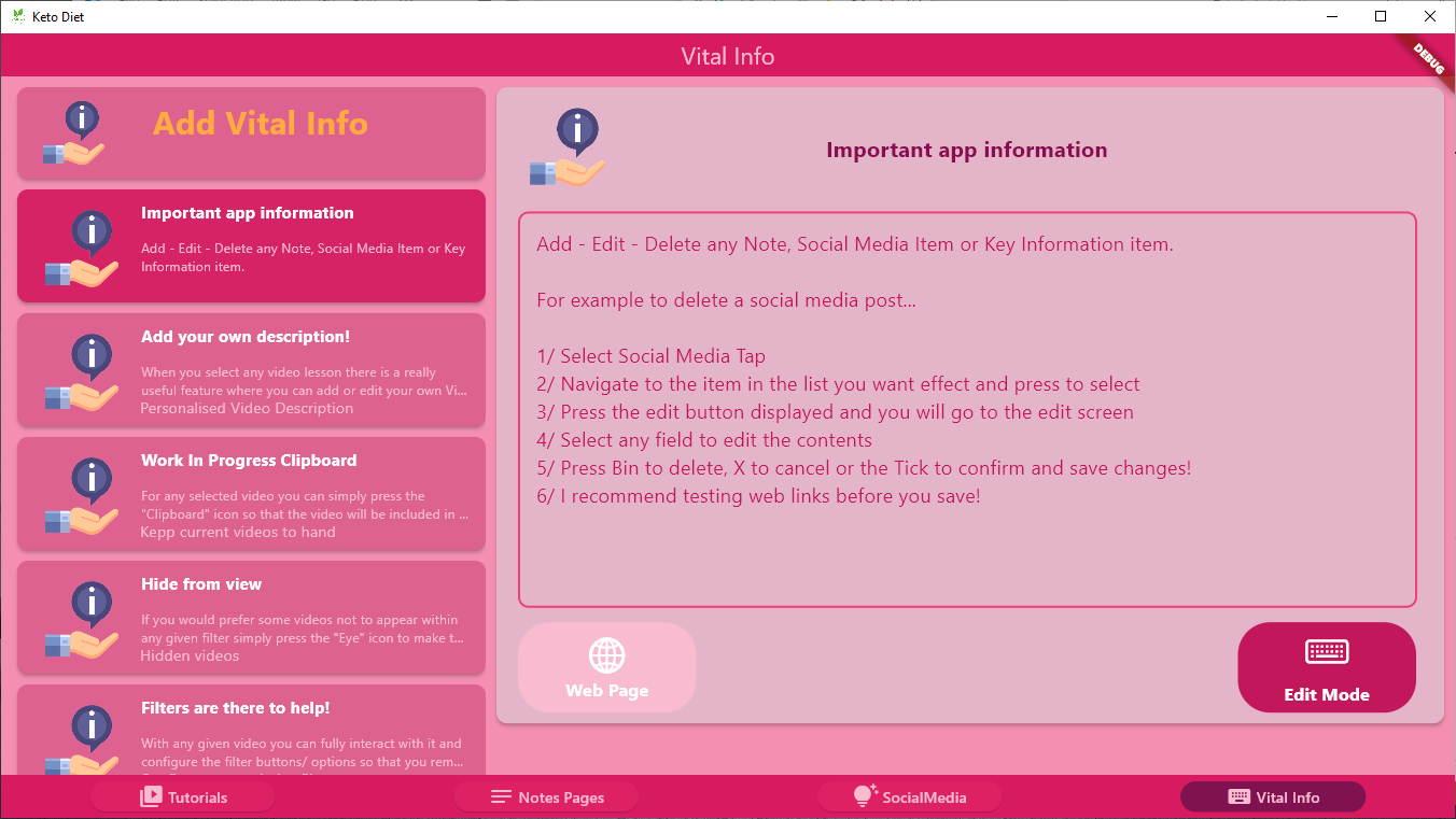 This app offers a powerful set of interactive tools to help you master the keto diet quickly and effectively. With integrated modules for user notes and vital information, you can store everything you need right in the app. It also includes a social media module where you can create one-tap links to your favourite social pages, keeping all your resources accessible in one place. Plus, your saved links are retained for future use, making it easy to stay connected.