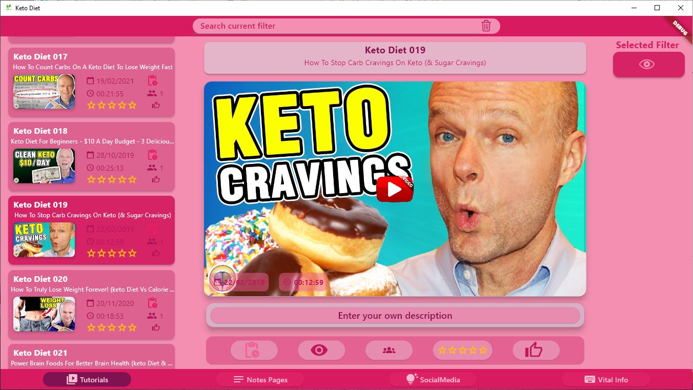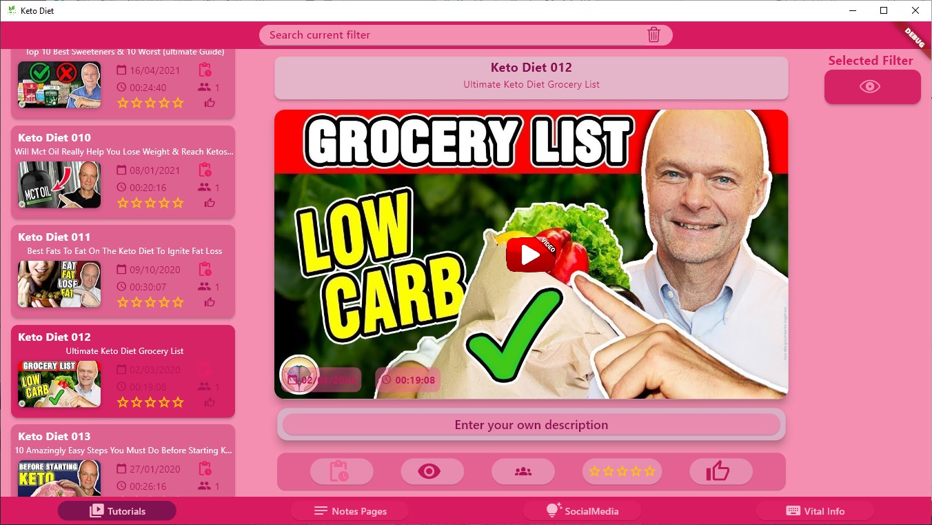 359 Video Tutorials on the Keto or Ketogenic DietLearn from the beginning with simple and natural learning steps - learn something new every dayDiscover scores of mouth watering recipesFully Customise and Maintain your own set of user notes within the self contained module Add and maintain your one touch Social Media Links to your favourite sites or user groupsKeep a customised set of \'Key Information\' details in the dedicated module so tou keep track of any vital info!All modules are there to help your learning experience all without the need to leave the app!Everything you need to learn as quickly as possible is included within the app