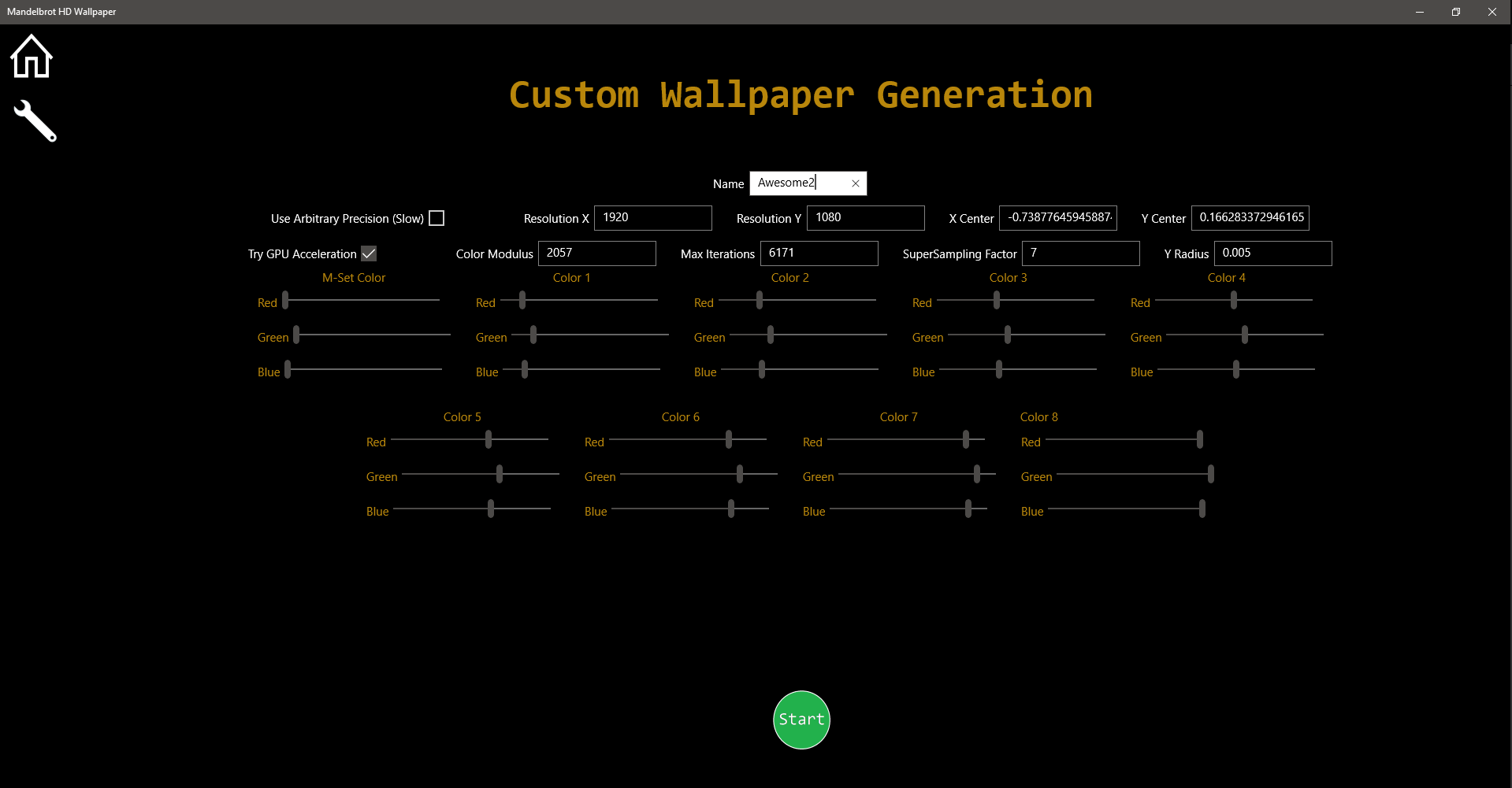 Mandelbrot wallpapers for single or multiple displays (even 3x 8K!). Browse the growing prerendered images (more with every release), or generate your own high quality images with custom parameters and colors, GPU support, and arbitrary precision support.