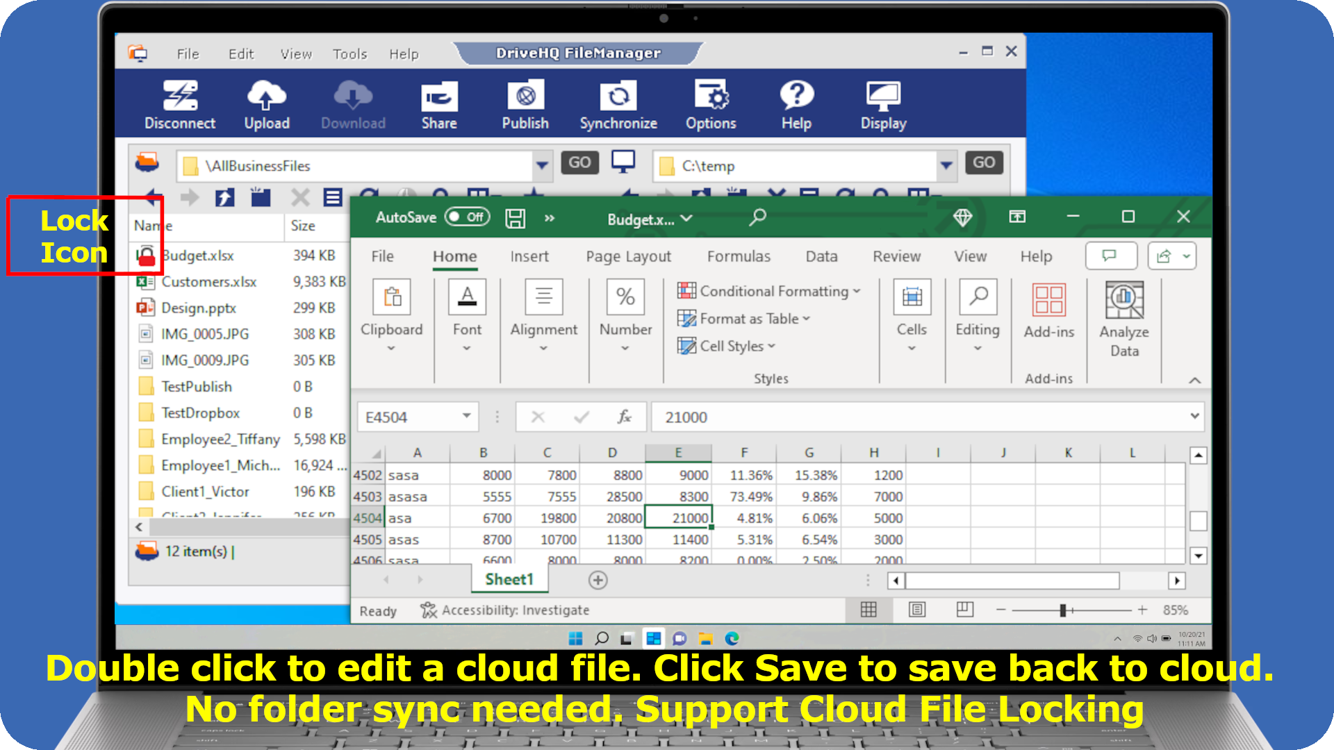 DriveHQ File Manager is seamlessly integrated with DriveHQ's cloud IT service. It can tranfer files of any size securely and reliably. You can share different folders with different users and set different permissions. Like WebDAV Drive Mapping Tool, DriveHQ FileManager also supports Cloud File Locking. When working with a team, Cloud File Locking can prevent your changes from being overwritten by other team members.