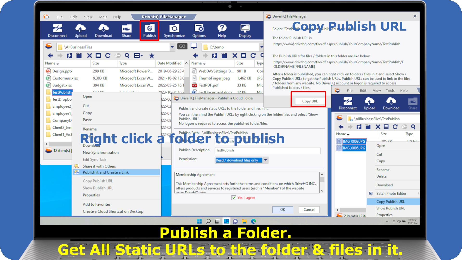 All the essential functions: create, delete, rename, copy, cut, paste etc.Drag and Drop to download and upload files / folders in batch.Resume broken downloads/uploads from the point of interruption.Easy sharing folders to non-member users by using a share notification email.Share different folders to different users / groups with different permissions.Directly open, edit and save remote files by saving the opened file directly.Support file locking & unlocking for group collaboration.Publish folders and create static links (i.e. Publish URLs) to files and folders.Publish a static website: just drag-&-drop website files to the wwwhome folder.Advanced caching that brings performance on par with local storage.Offline access - if files are cached, you can access them even if you are not online!International language support with Unicode.Automatically prompt the user to send "Share change notification email" if he uploaded / modified a file in a Shared folder.Automatically compress data for faster upload / download.Using DriveHQ\'s MagicUpload technology, upload speed can be many times faster in certain cases.Sync folders among multiple PCs and users; real-time and scheduled synchronization.One-way or two-way synchronization; sync folders with file / folder name filters.Support group and sub-group; support companies with over 10,000 employees!Can upload files larger than 10GB (no file size limit).Encrypted folder support: files are encrypted locally before they are uploaded to DriveHQ; files remain to be encrypted on DriveHQ server. Thus it is extremely secure.