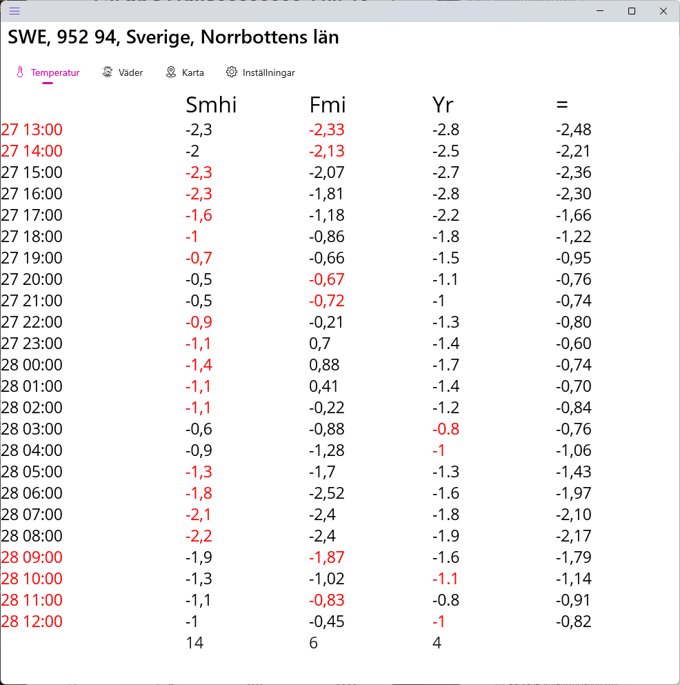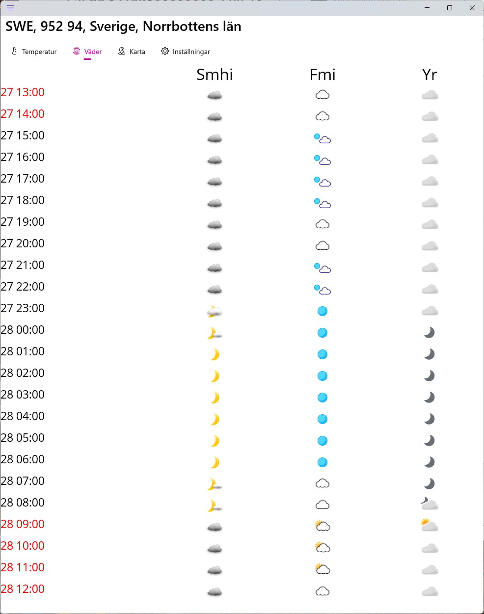 jsSNF ger dig en 1-dagars-väderprognos. Temperatur och Väder. Smhi/Fmi/Yr.