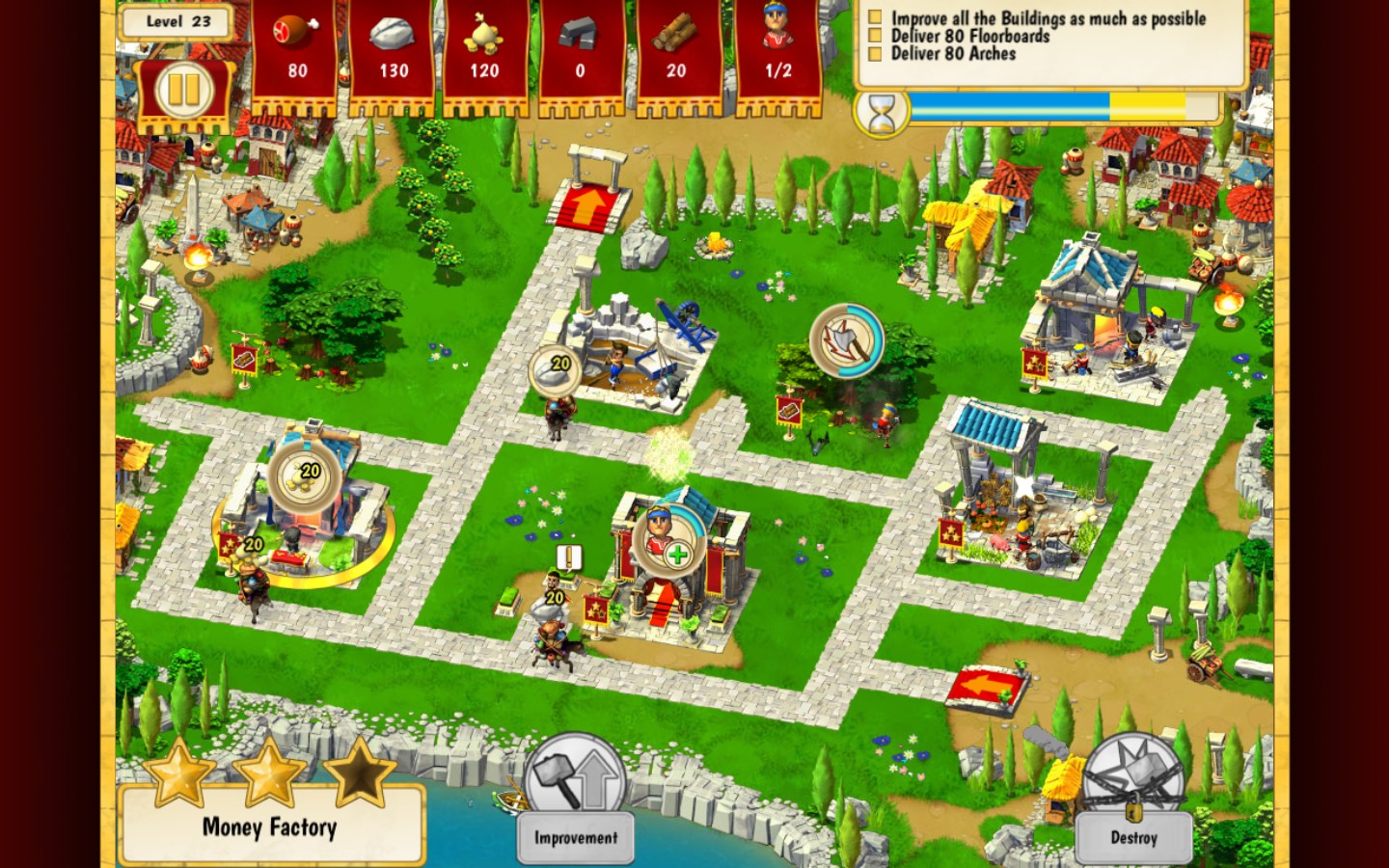 Participate in the construction of the iconic Colosseum of Rome while learning tons of anecdotes. Become the construction site manager of one of the world's most famous monuments: clear the site, build quarries, tame lions and take on superstar gladiators. Don't forget to tame the lions and to hire workers, otherwise you won't finish in time!