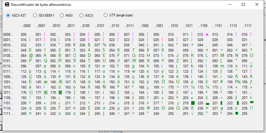 Additionally, the application allows to visualize ASCII tables and their different extensions