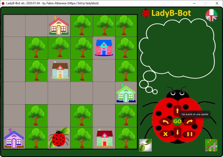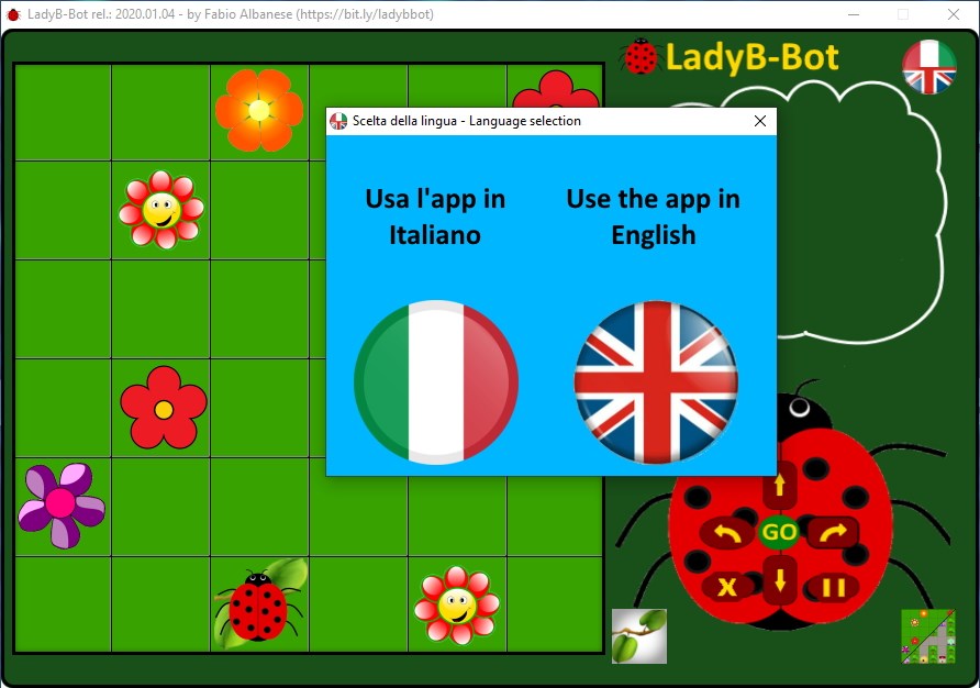 LadyB-Bot is a freeware app for Windows or Mac systems designed to introduce coding in kindergarten and primary school. The program simulates the operation of a "robotic ladybird".