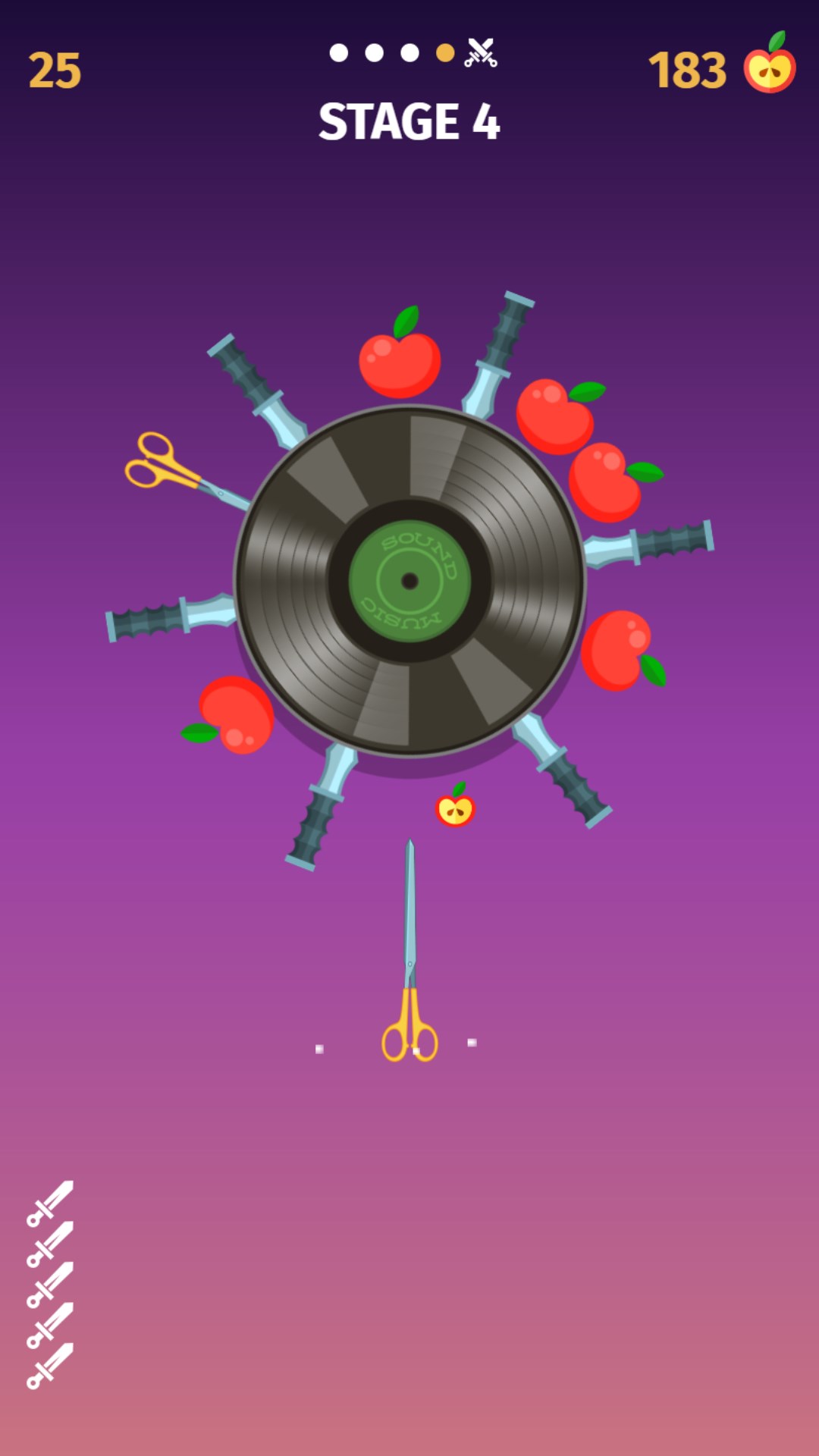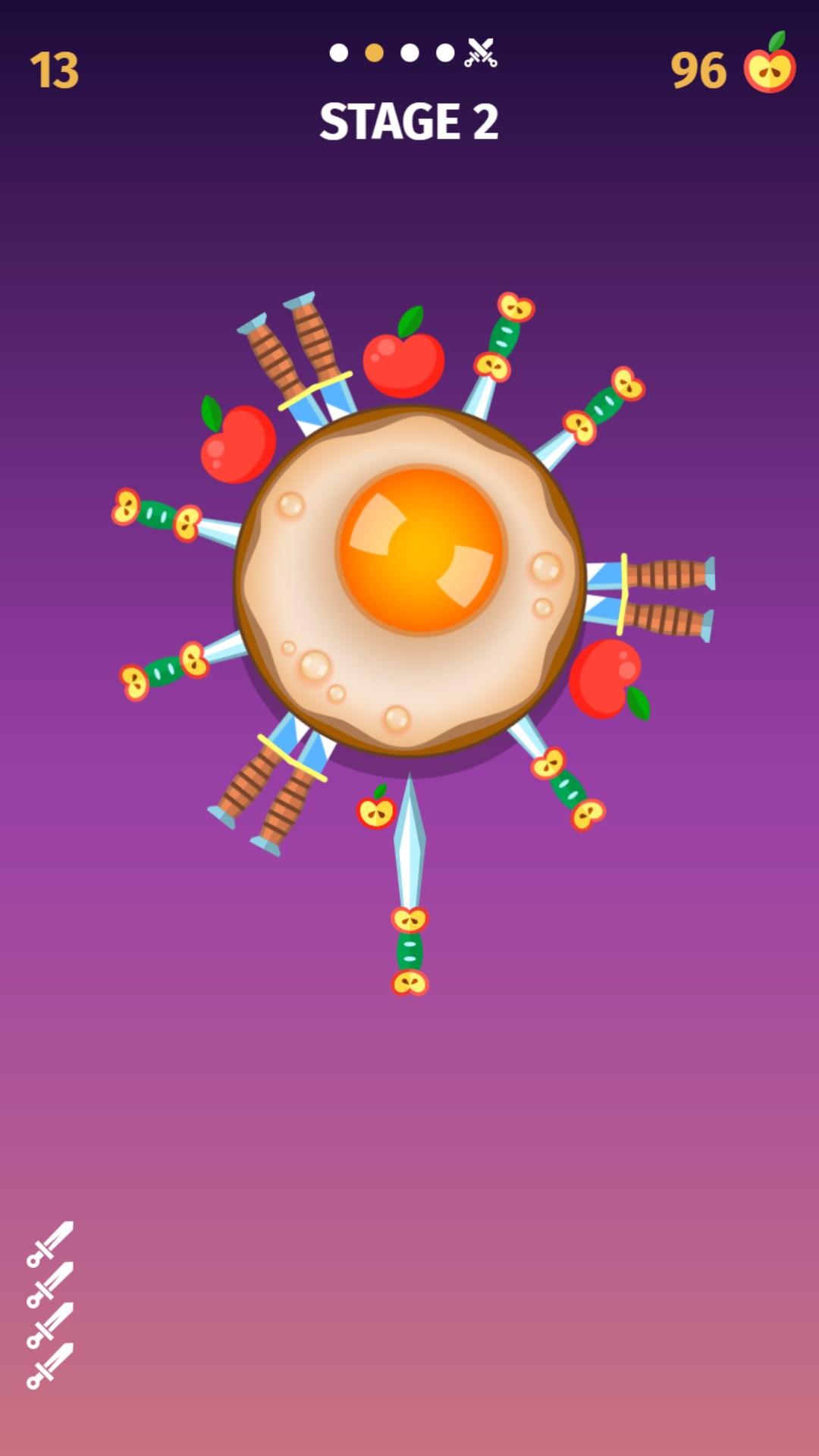 Tap to throw a knife at the spinning target. Avoid hitting other knives or obstacles. Take your time, precision counts!