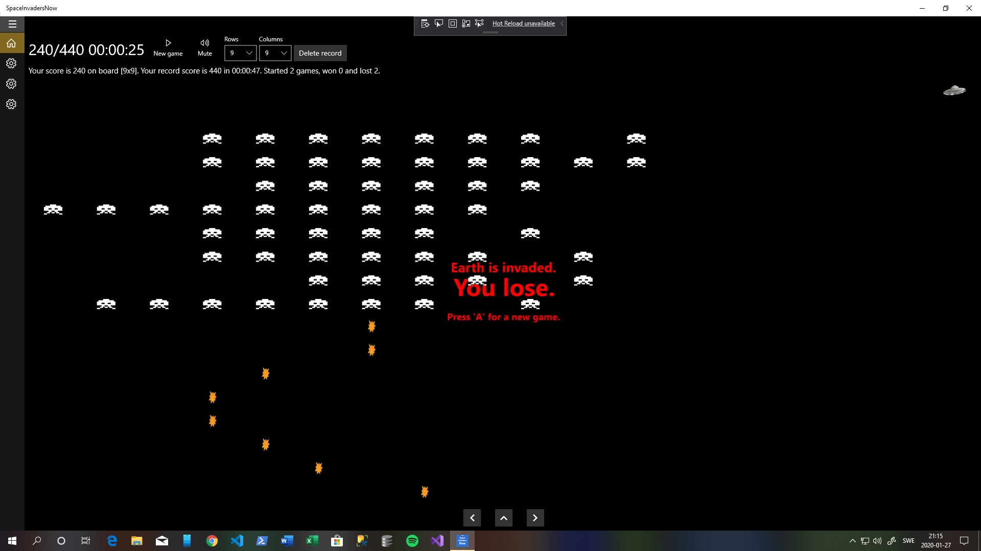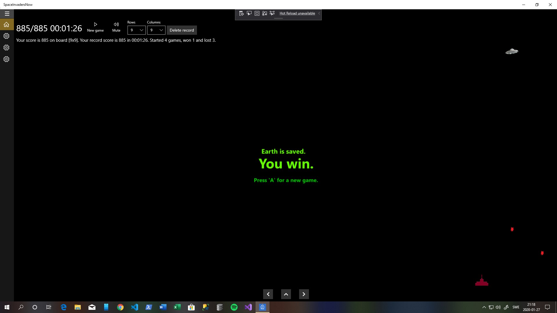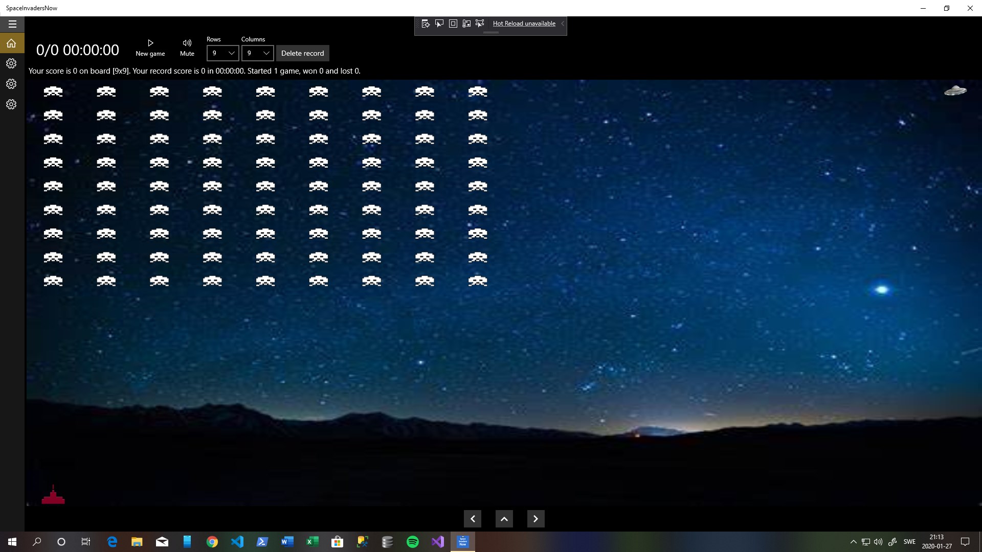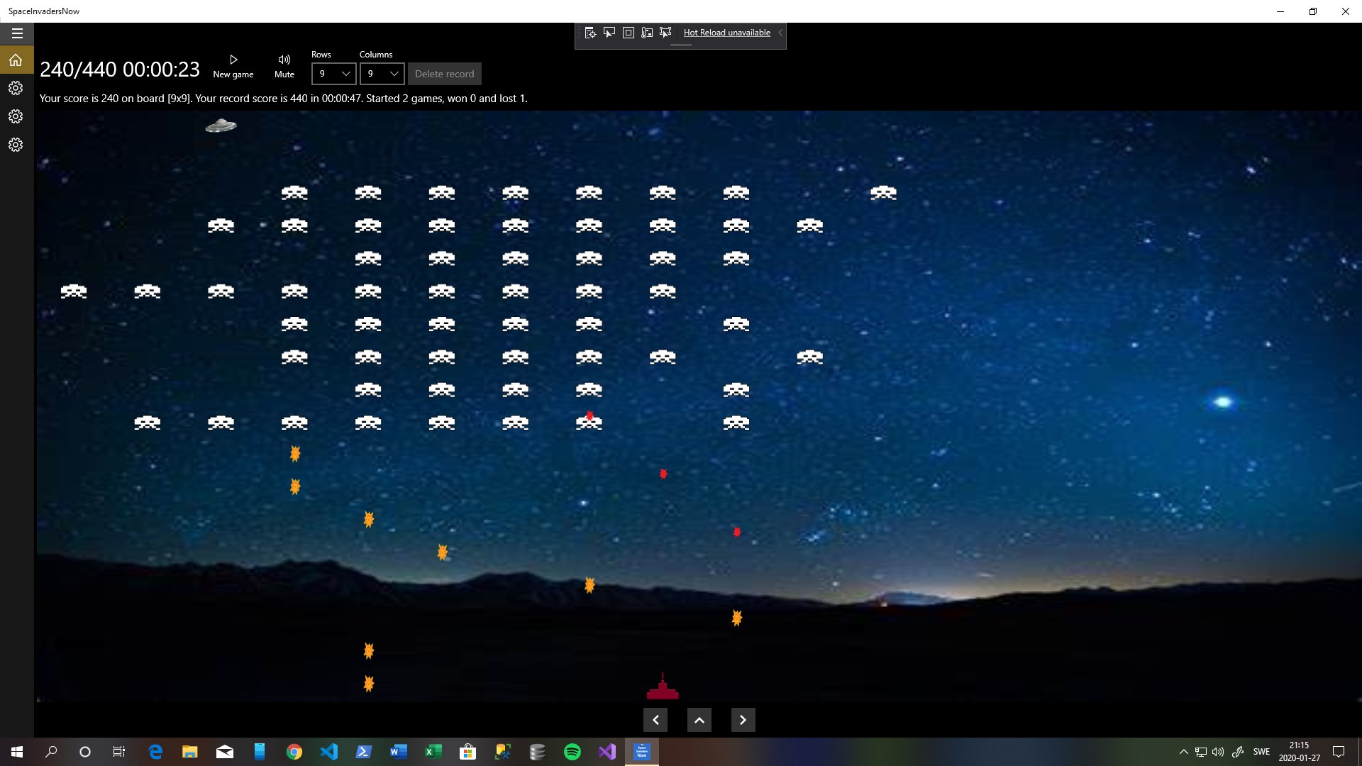 Alien ship crows between rows of invaders dropping bombs to earth.
