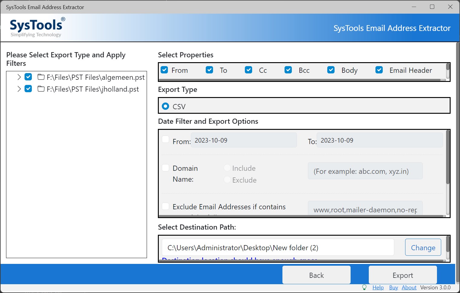 SysTools Email Address Extractor is an incredible tool effortlessly extract all email addresses from any email client. Using this tool, users can extract email addresses from various formats such as PST and OST files. Also, it offers a straightforward way of saving extracted email addresses in CSV format.