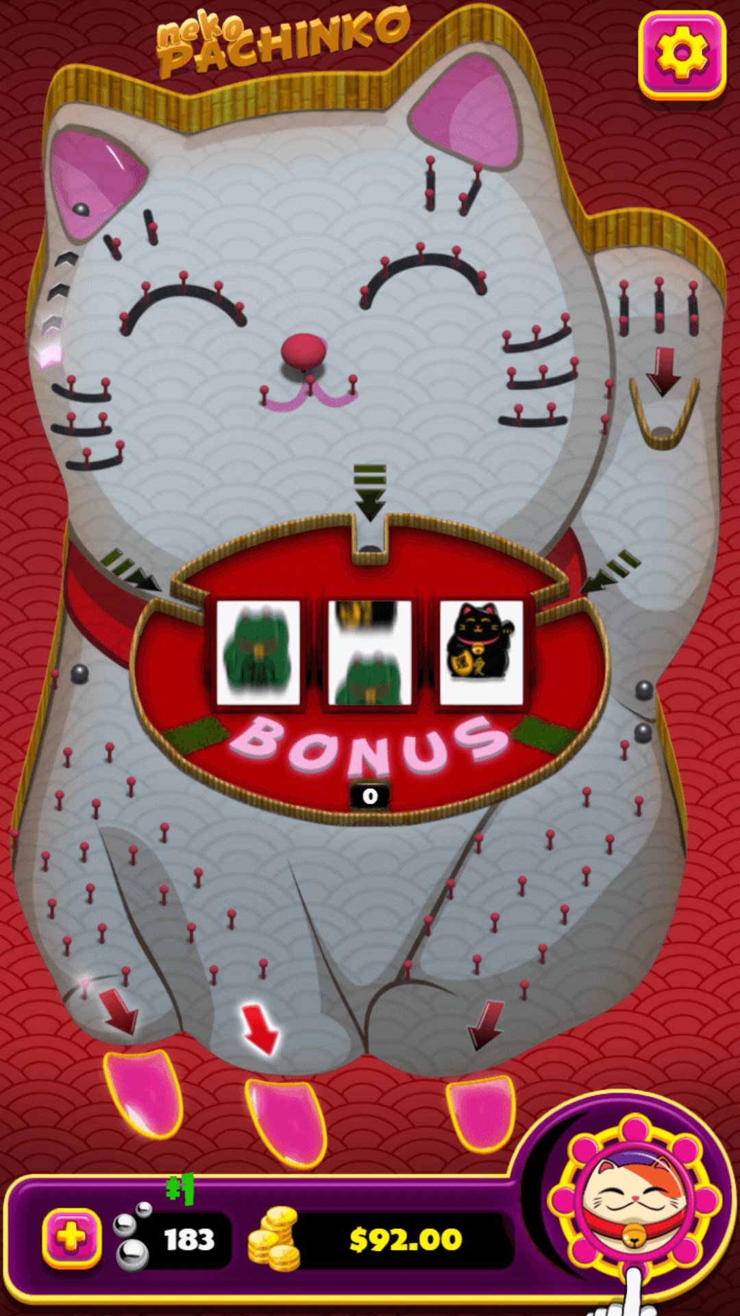 Have a taste of Japanese culture with this funny and cute game! Launch your balls in the board and set their power turning the wheel at the bottom.