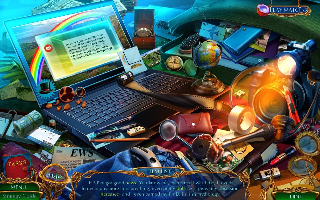 When your friend, an Irish mythology expert, wants to check out a new Leprechaun museum, you’re both off to Ireland! But your luck quickly turns when her wish transports her through a pot of gold to the World of Leprechauns! Someone’s using magic to lure humans to their realm, and only you can find out why. Do you have what it takes to uncover their sinister plan and rescue your friend in time? Find out in this sensational Hidden-Object Puzzle adventure!
