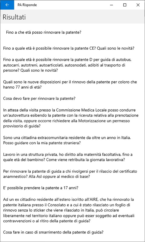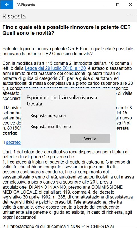 PA Risponde è basata anche su algoritmi di intelligenza artificiale che imparano dall'interazione con l'utente per adattarsi più facilmente ai suoi specifici bisogni informativi. Lasciando il tuo feedback contribuirai al miglioramento della qualità delle risposte!