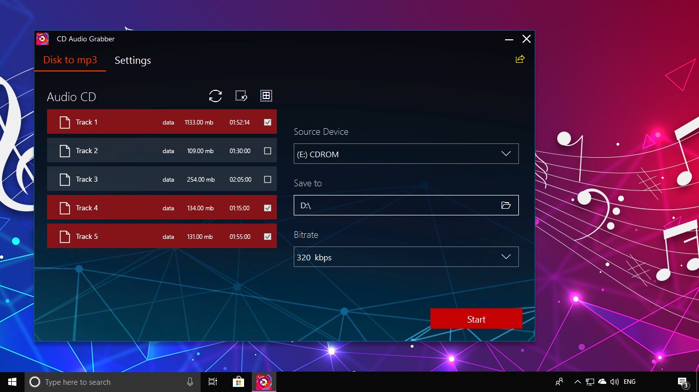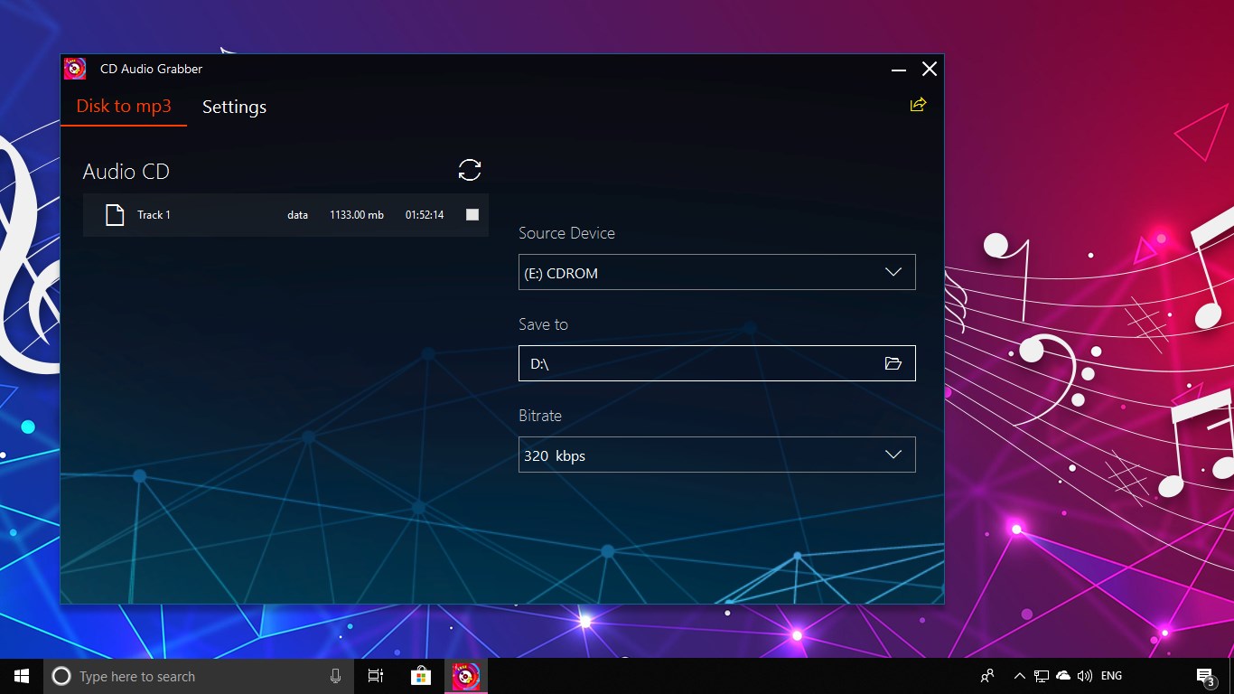 Grab MP3 files from any CD Discs with a click.Choose one or multiple tracks from the disc.Convert in a queue and follow the process.Save tracks without losing original quality.Adjust the desired bitrate for any MP3 files.Store tracks anywhere on your device.