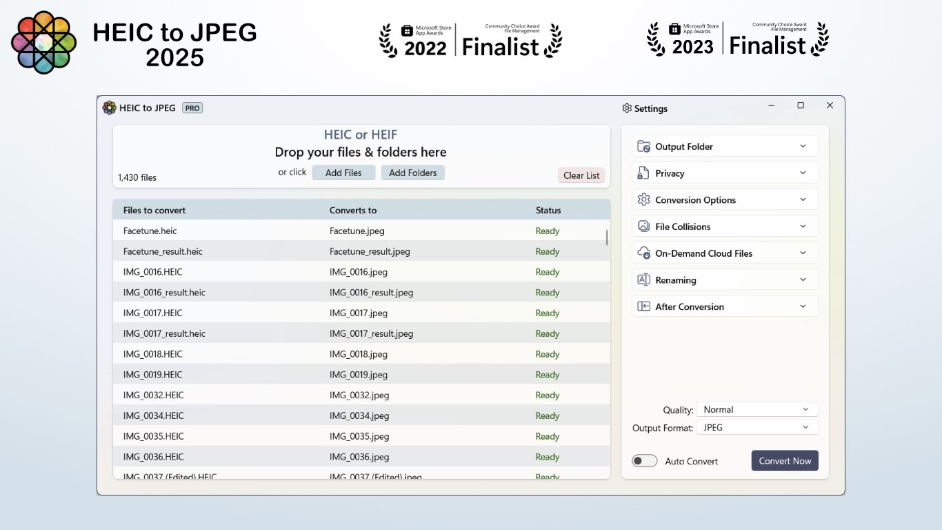 ***** Caroline - So simple to use. Converts hundreds of my photos from HEIC to JPEG in minutes.
