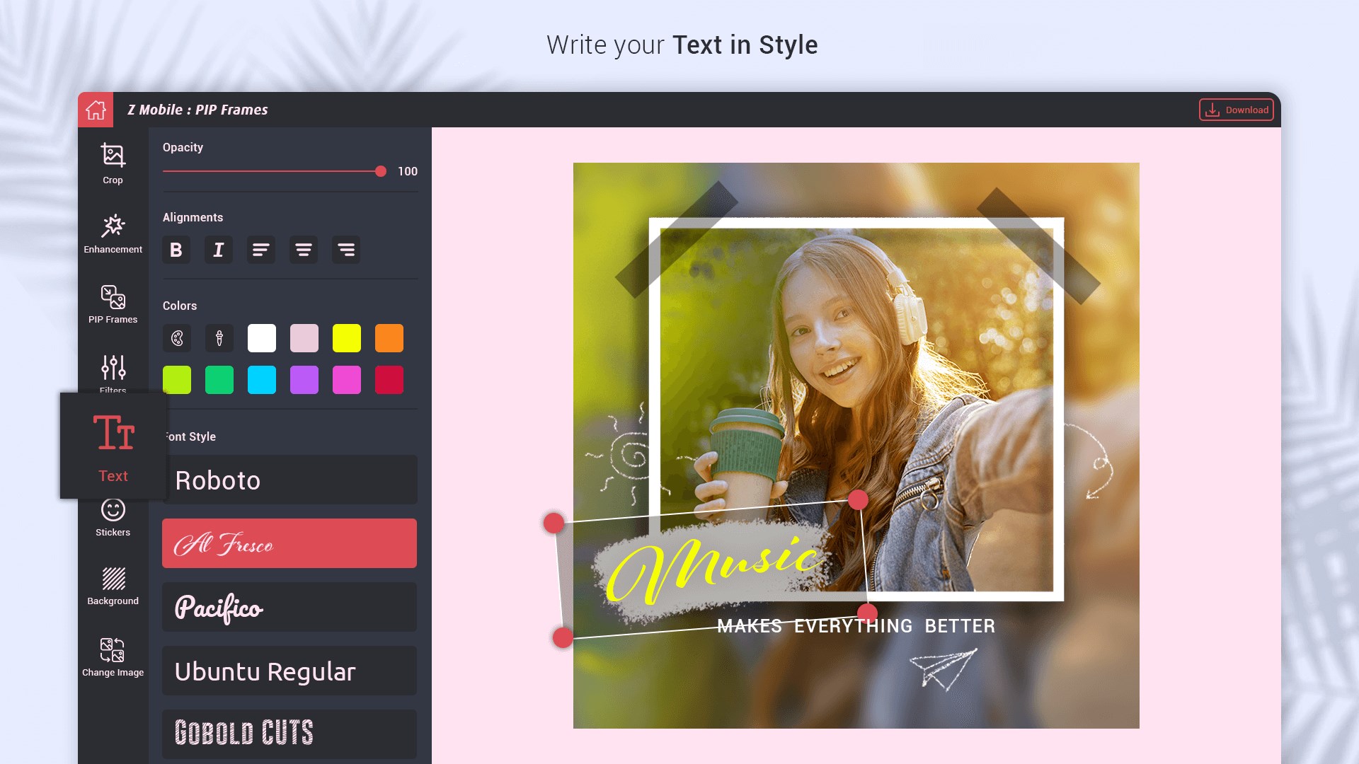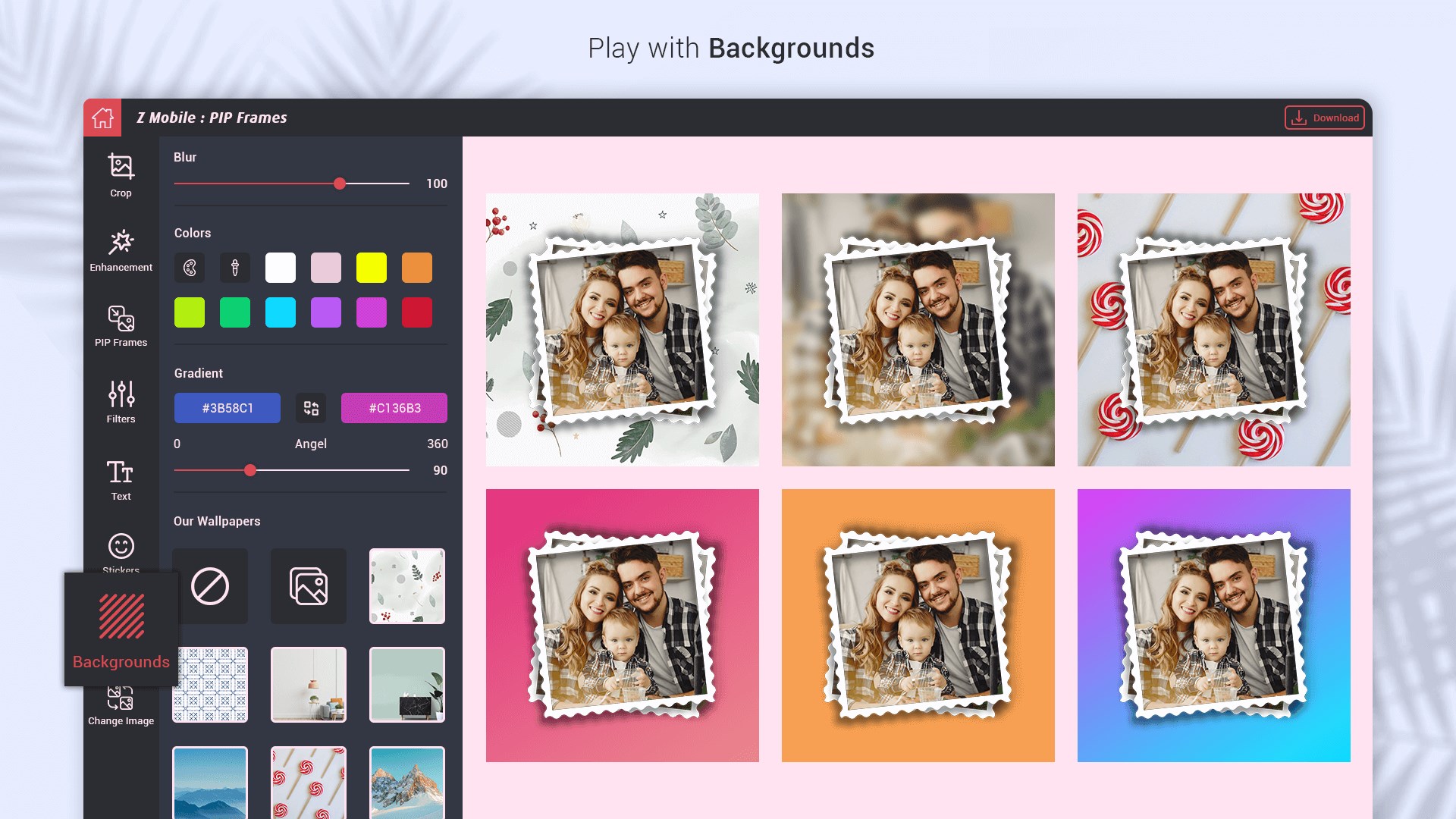 With a massive number of frames and other options to choose from make your photos and videos outstanding. PIP Photo frames provide a complete range of frames, effects, stylish background and stickers that take