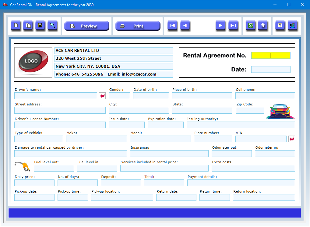 The car rental company can use a custom logo to make the printing of Rental Agreements more professional.