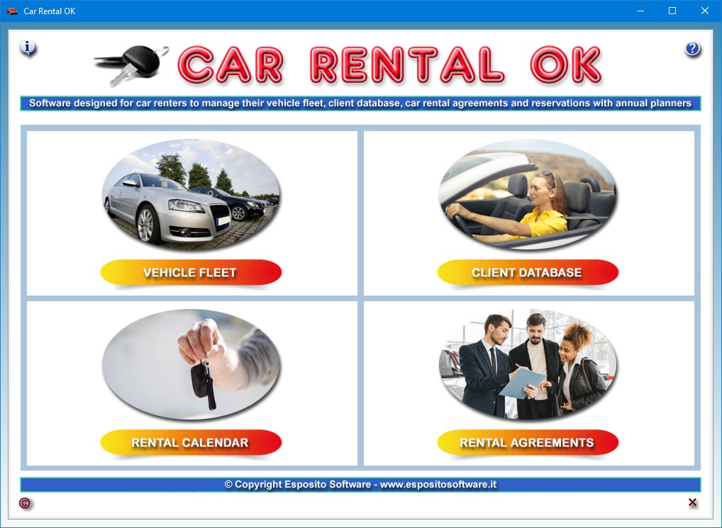 Software designed for car renters to manage their vehicle fleet, client database, car rental agreements and reservations with annual planners