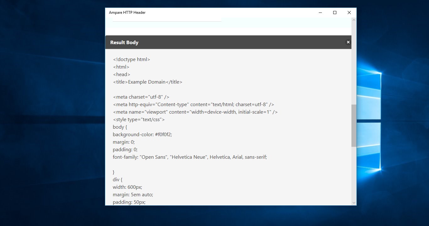 Ampare HTTP Header Display HTTP Response Header with Optional Response Body on Any Website URL You Like.