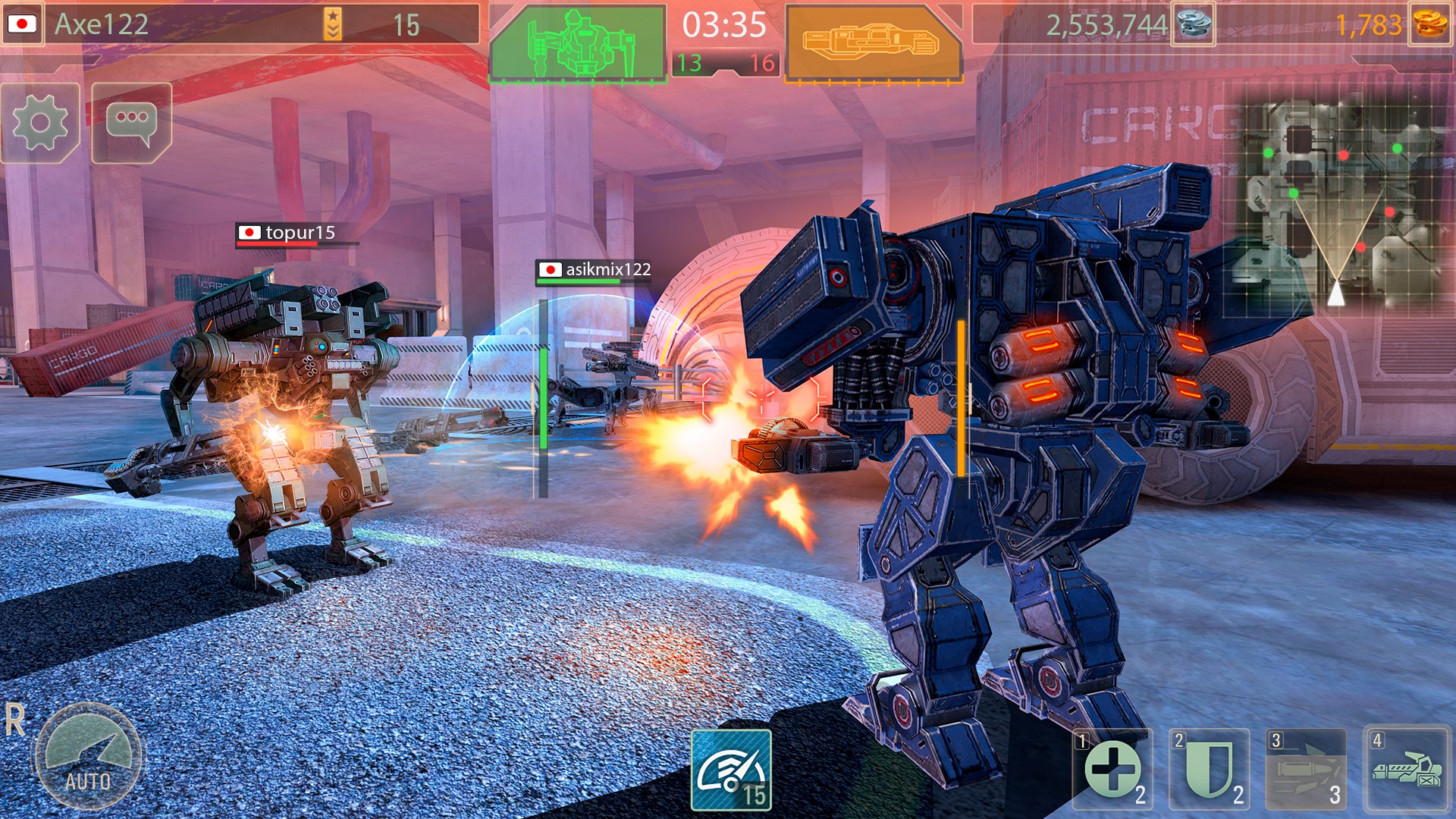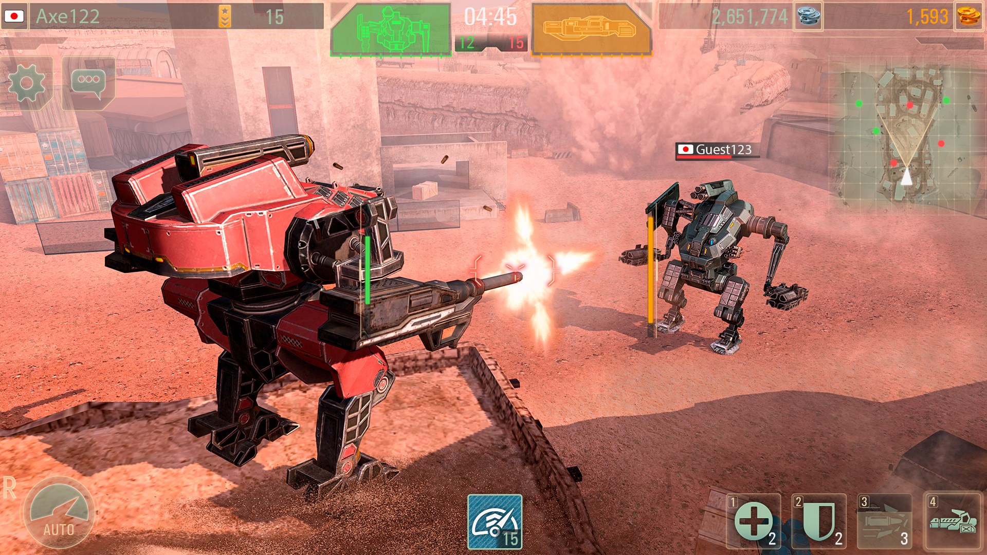 Awesome 3D shooter with real-time battlesVarious robots with unique characteristics and weaponsRound-the-clock online battles with players around the worldModern 3D graphicsTeam fights and clan tournaments - become part of the gaming communityVarious upgrade modulesLots of camouflageUnique battle arenasSuper-weapons: a homing missile or a killer drone? The choice is yoursDynamic battles where everyone is for himselfDaily rewards and activity bonusesCombat quests - complete them every day and get additional rewards!