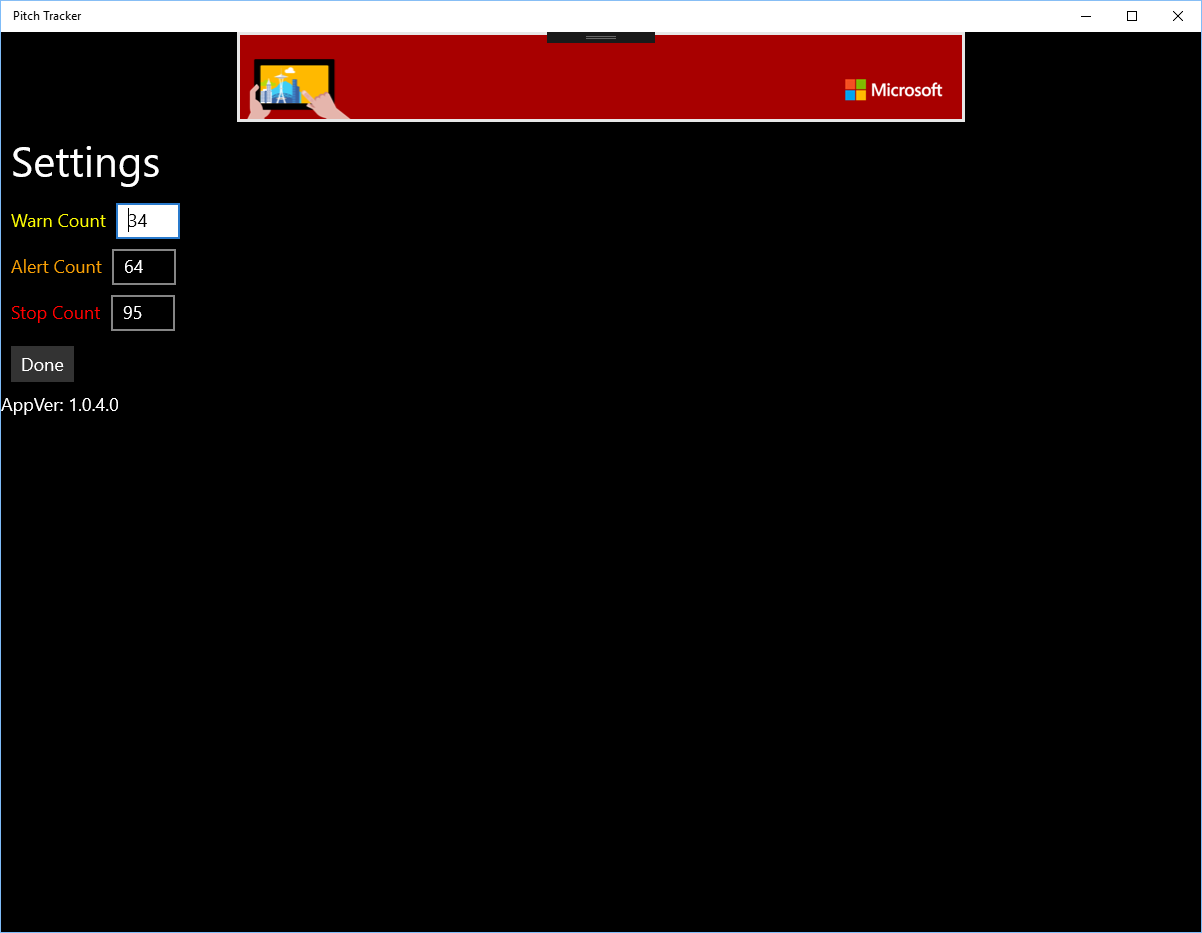 Pitch Tracker is the simplest way to track pitch count and basic stats of little league pitchers! There are user-settable limits for pitch count Warnings, Planned Stop, and Hard-stop points. When these limits are reached a warning message is shown.