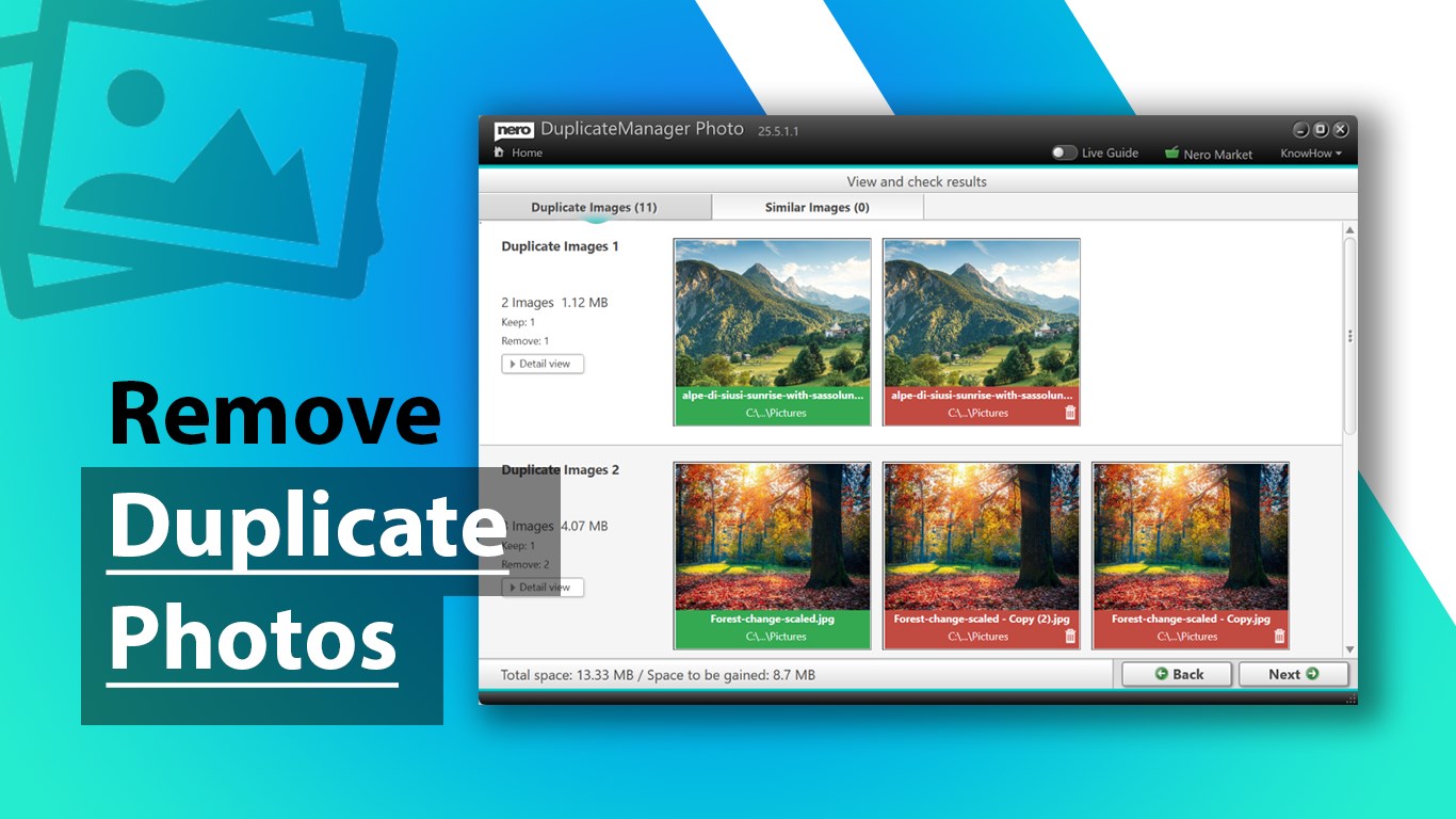 Duplicate Cleaner! by Nero helps you to clean up your image archive with exact, duplicate and similar images quickly and accurately.