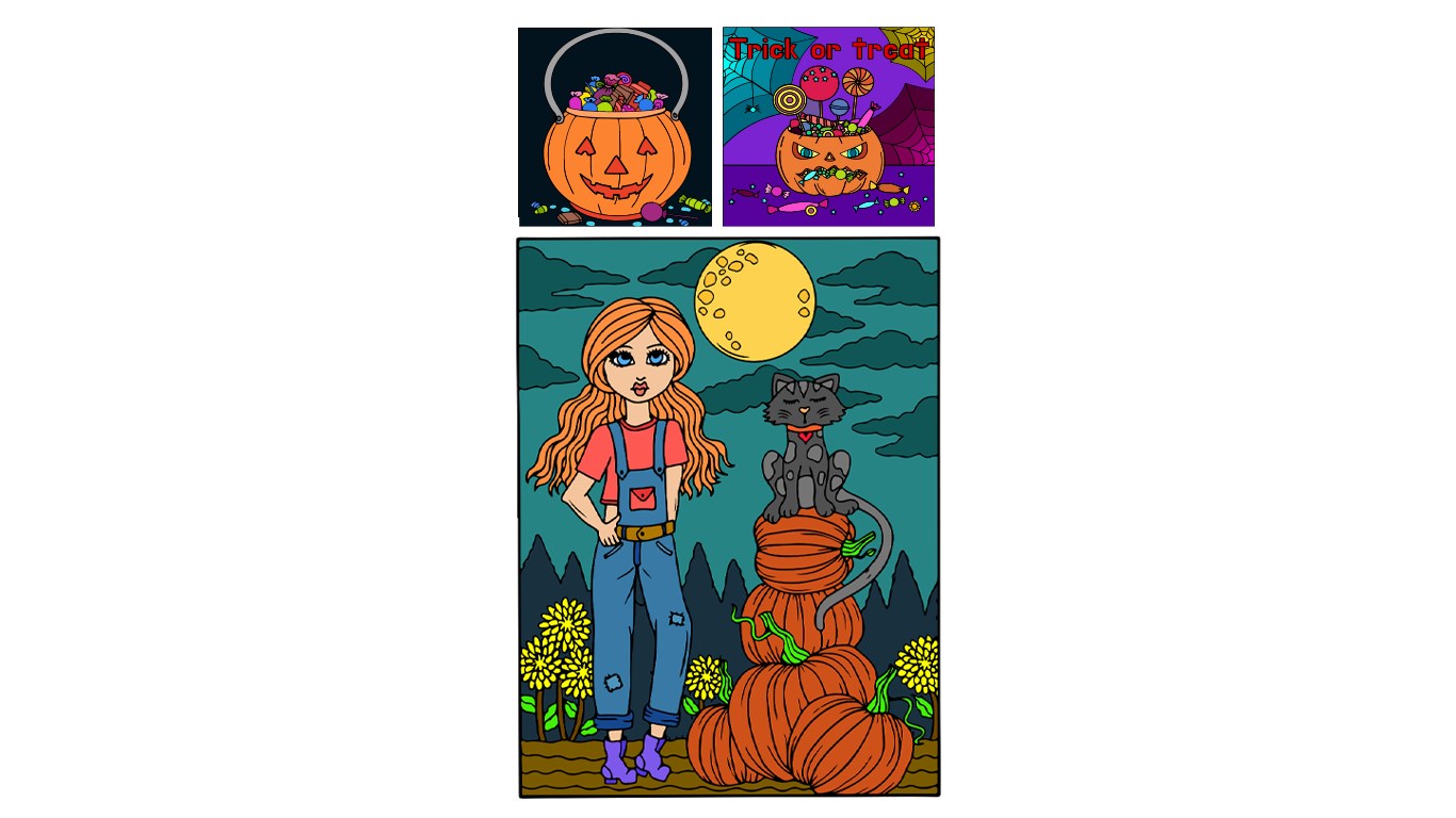 - Colorize pumpkins, vampires, and ghosts that pay attention to every detail.