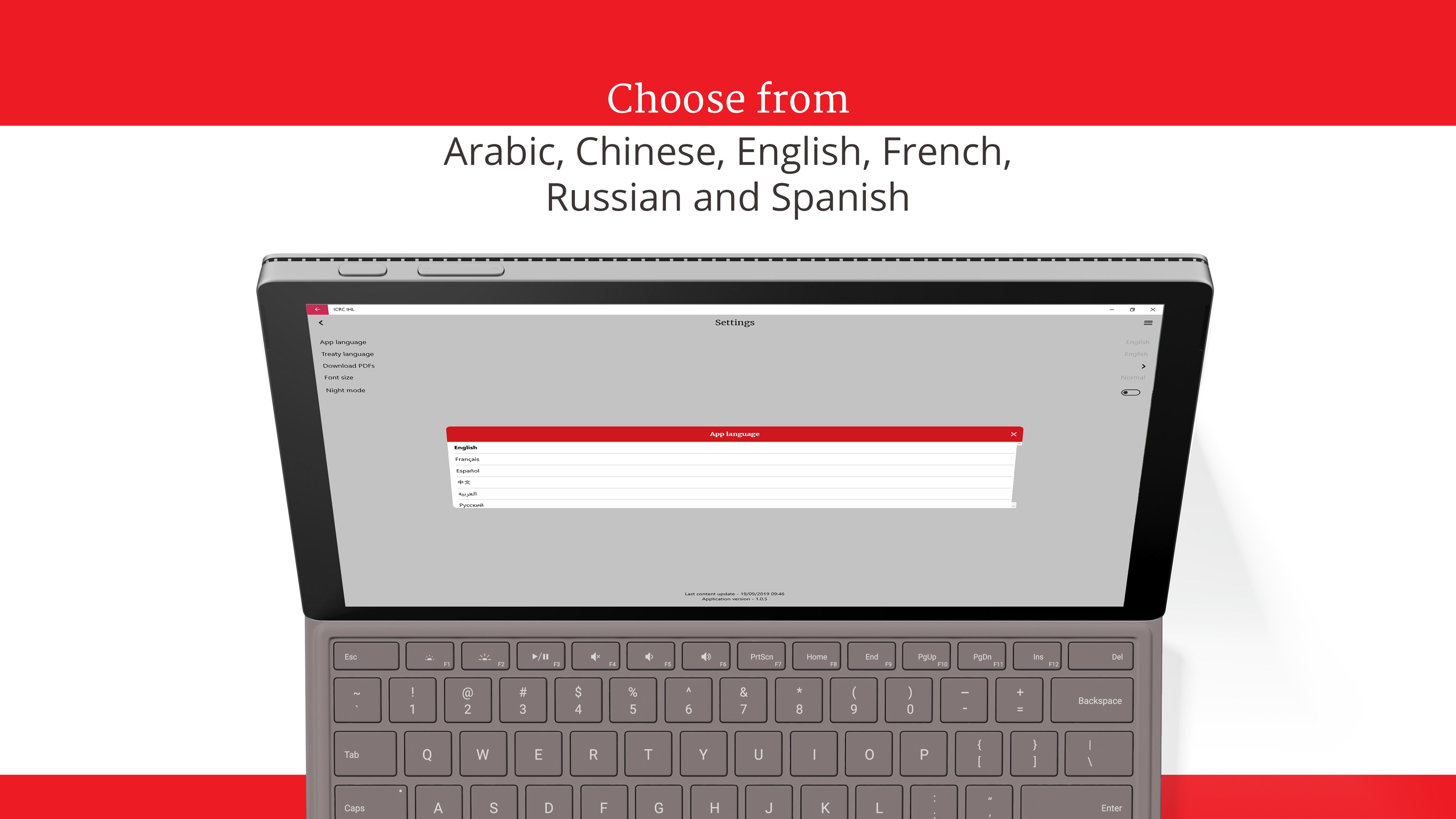 user’s device language are automatically downloaded when the application is first installed. Users can also manually download and then delete PDFs in the language of their choice. We recommend installing a separate PDF-reader application to consult PDF texts.