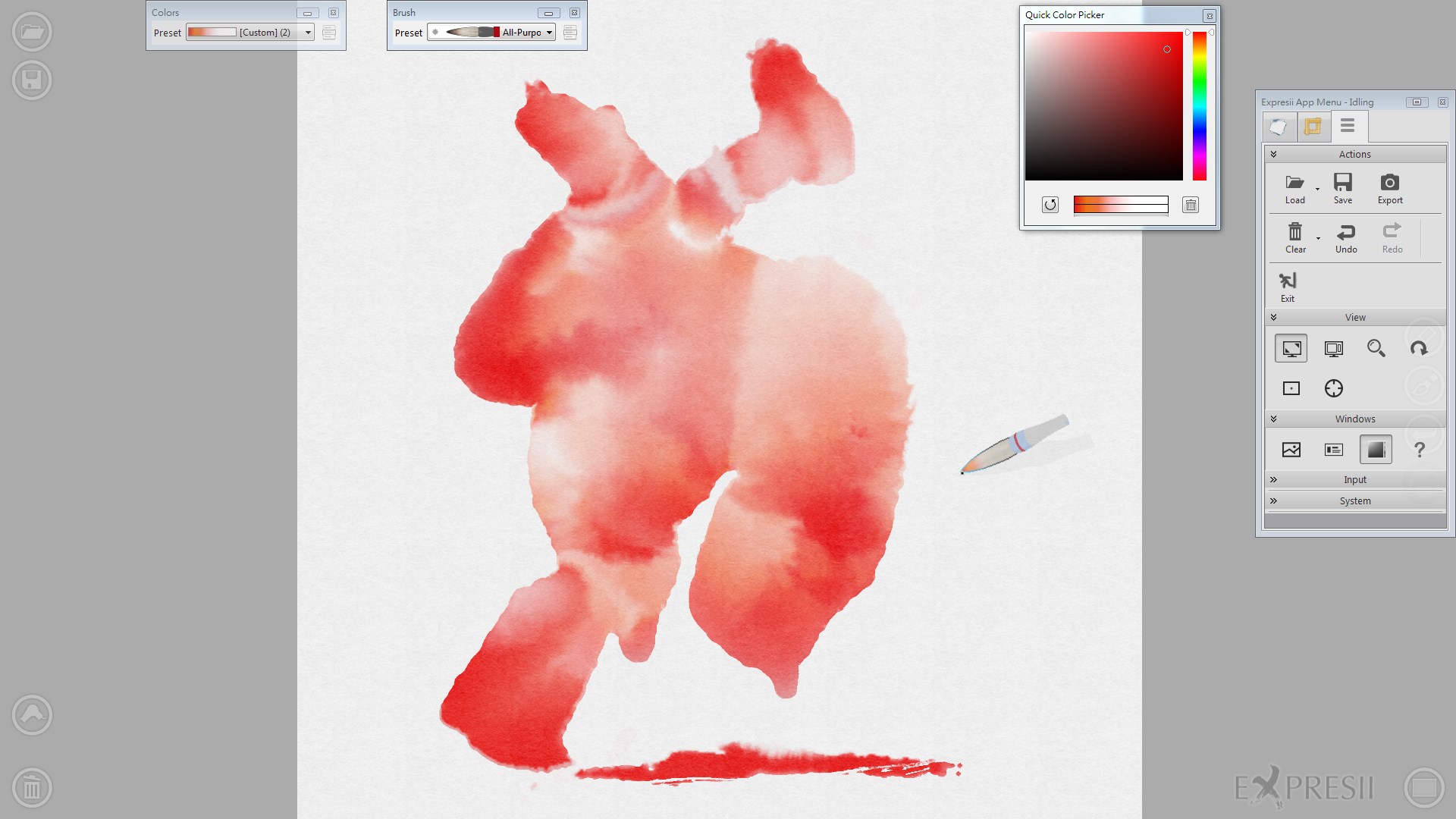 The Demo version auto-load a sample artwork and give you easy access to toggle "Fast Mode" so that 1. you run Expresii smoothly even on a low-end GPU, 2. you can show how a better GPU boosts the experience.