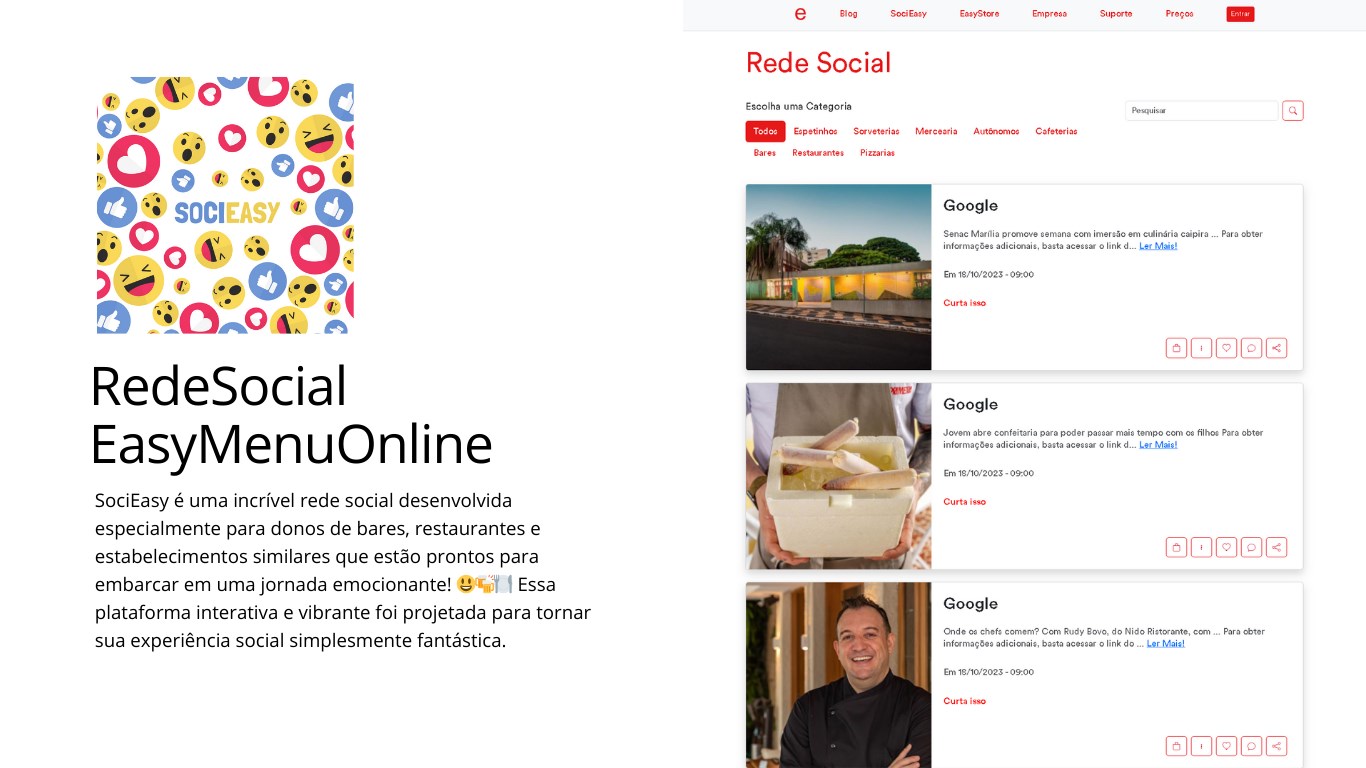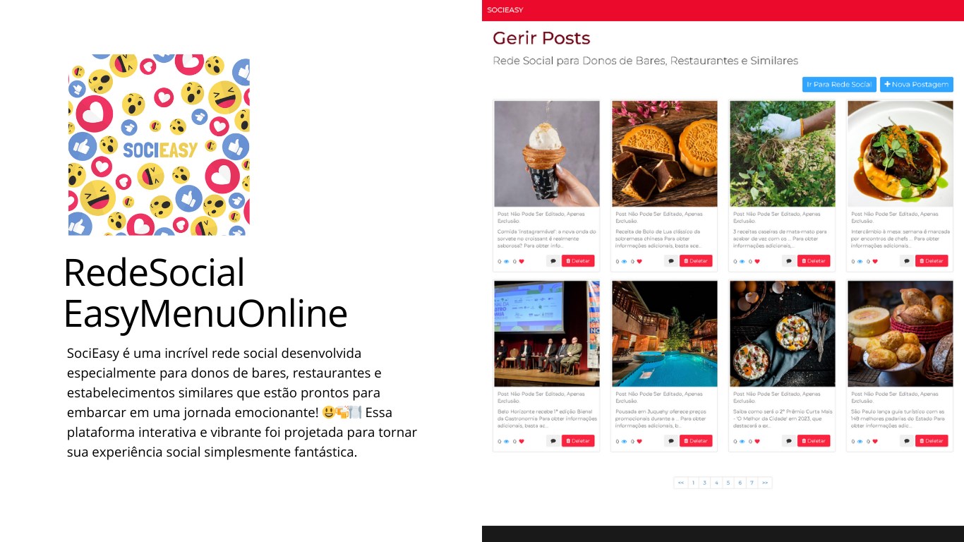 SociEasy é uma incrível rede social desenvolvida especialmente para donos de bares, restaurantes e estabelecimentos similares que estão prontos para embarcar em uma jornada emocionante!