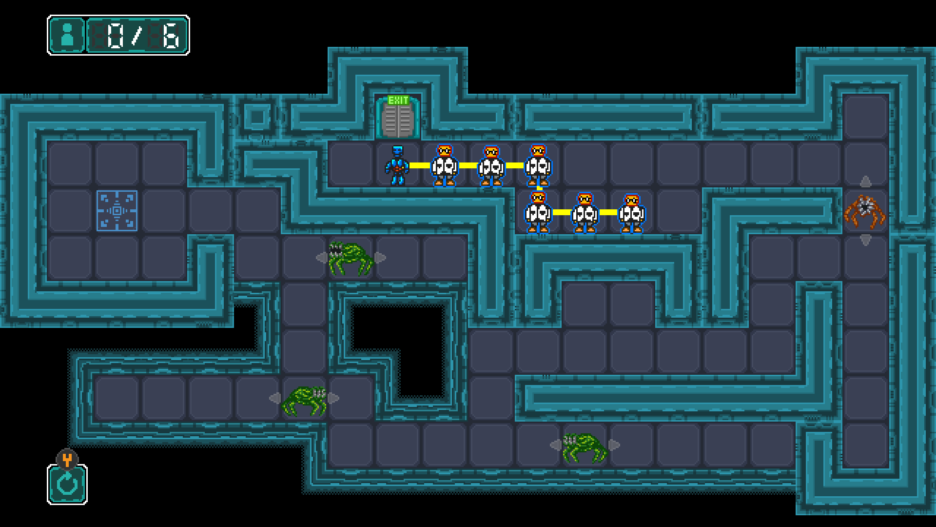 Lab Crisis is a turn-based puzzle about a robot who's rescuing scientists from a mutant-infested lab! The more scientists you grab at once, the longer is the chain, so be careful!