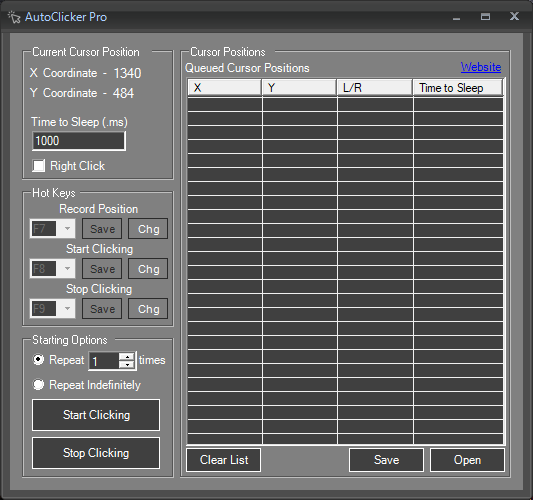 Hotkey Functions to record, start, and stop clicks when the auto clicker windows isn\'t in focus!Save mouse clicksImport mouse clicks