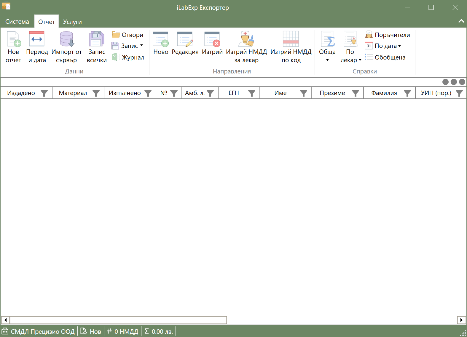 iLabExp Експортер е стандартния инструмент за отчитане пред НЗОК за ЛИС iLab. Пълна функционалност и регулатрона съвместимост. Приложението е с удобен и красив потребителски интерфейс и изцяло елиминира нуждата от влизане в ПИС на НЗОК. Може да се ползва и от потребители, ползващи други информационни системи.