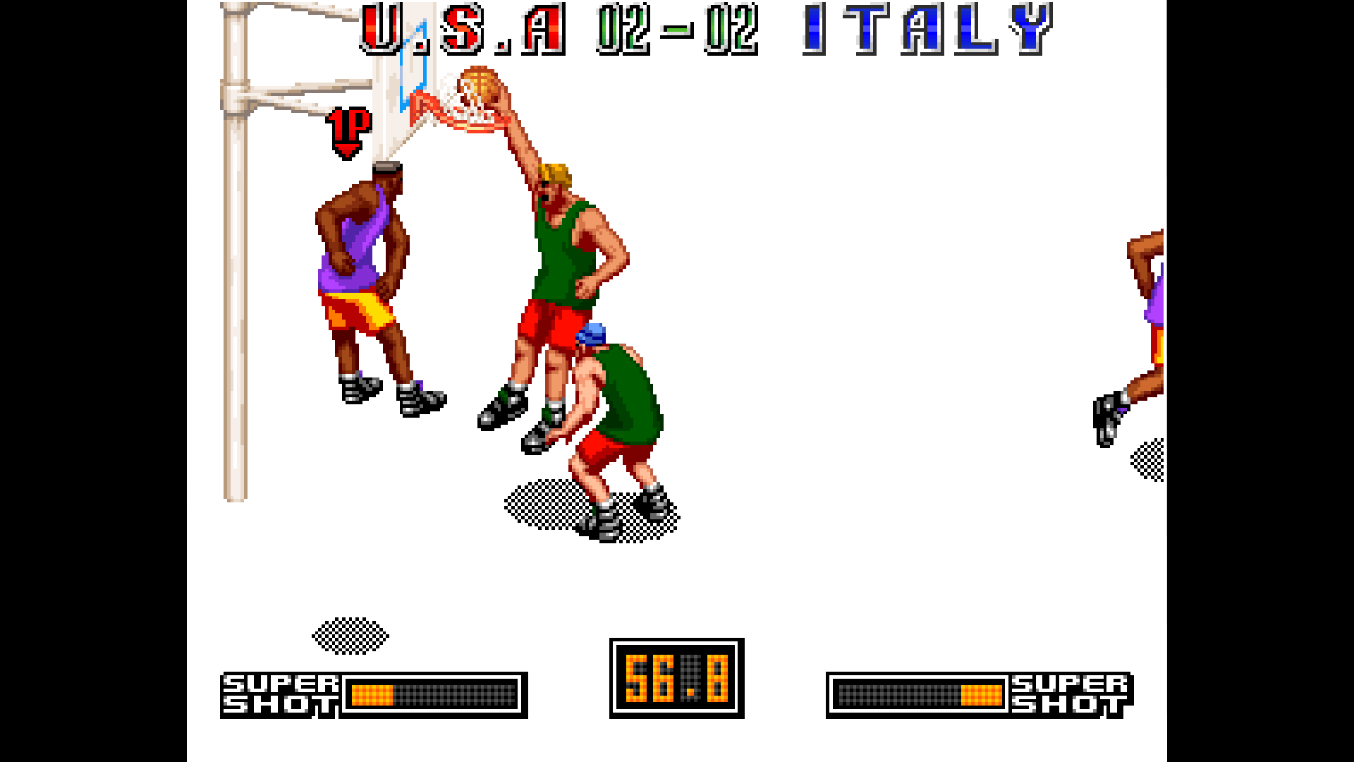 STREET HOOP is a street basketball game released by Data East in 1994. Pick a team from the 10 competing countries and aim to be the world's best. In addition to a variety of techniques, power can be charged and released for flashy super dunk shots, making for exhilarating street basketball.