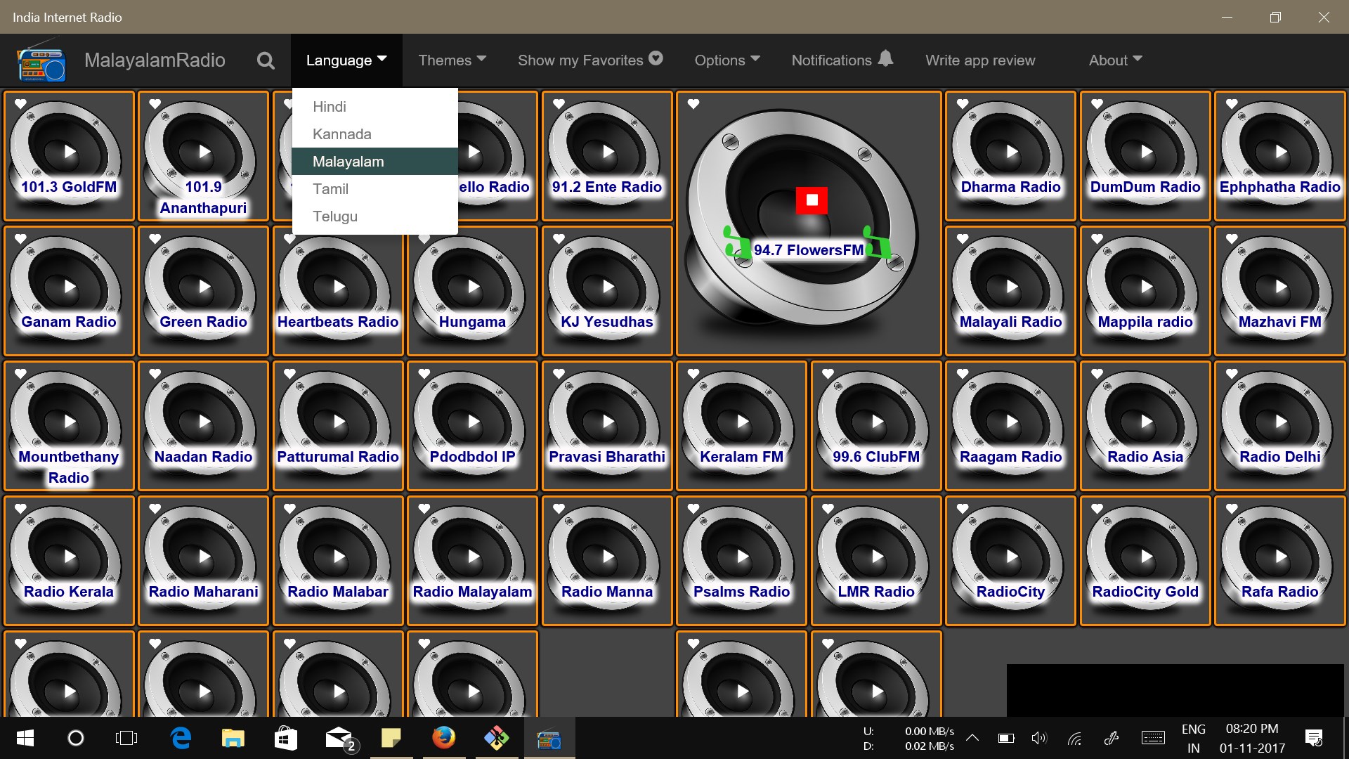 * Selected top Tamil/Telugu/Hindi/Malayalam radio channels over the Internet