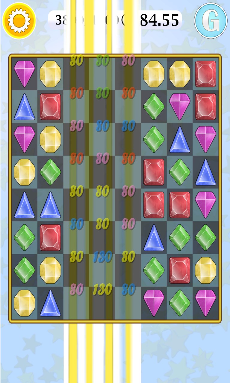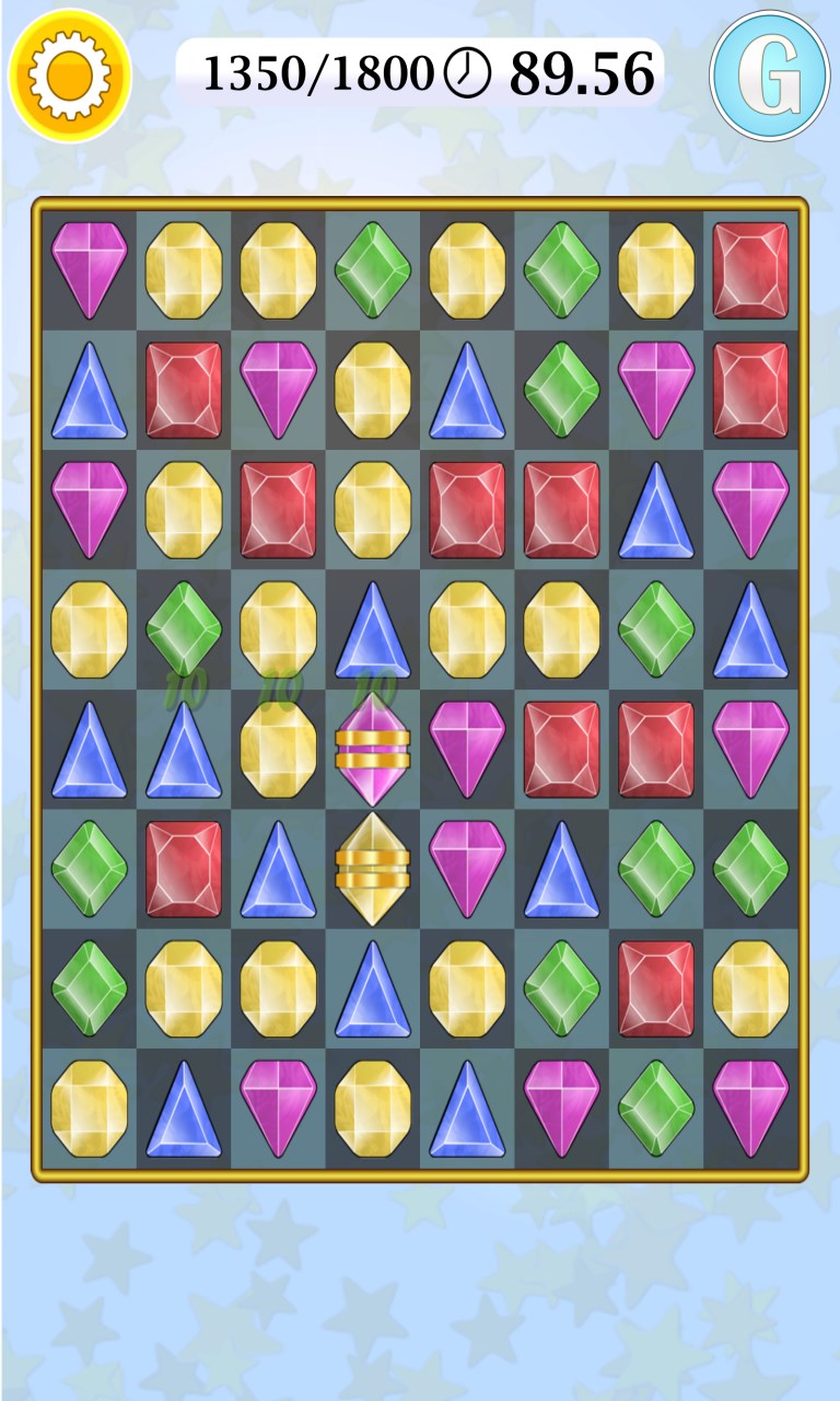 ✓ By matching 4 jewels of the same color in one row, a column buster appears. When matched, clears the entire column it is on.