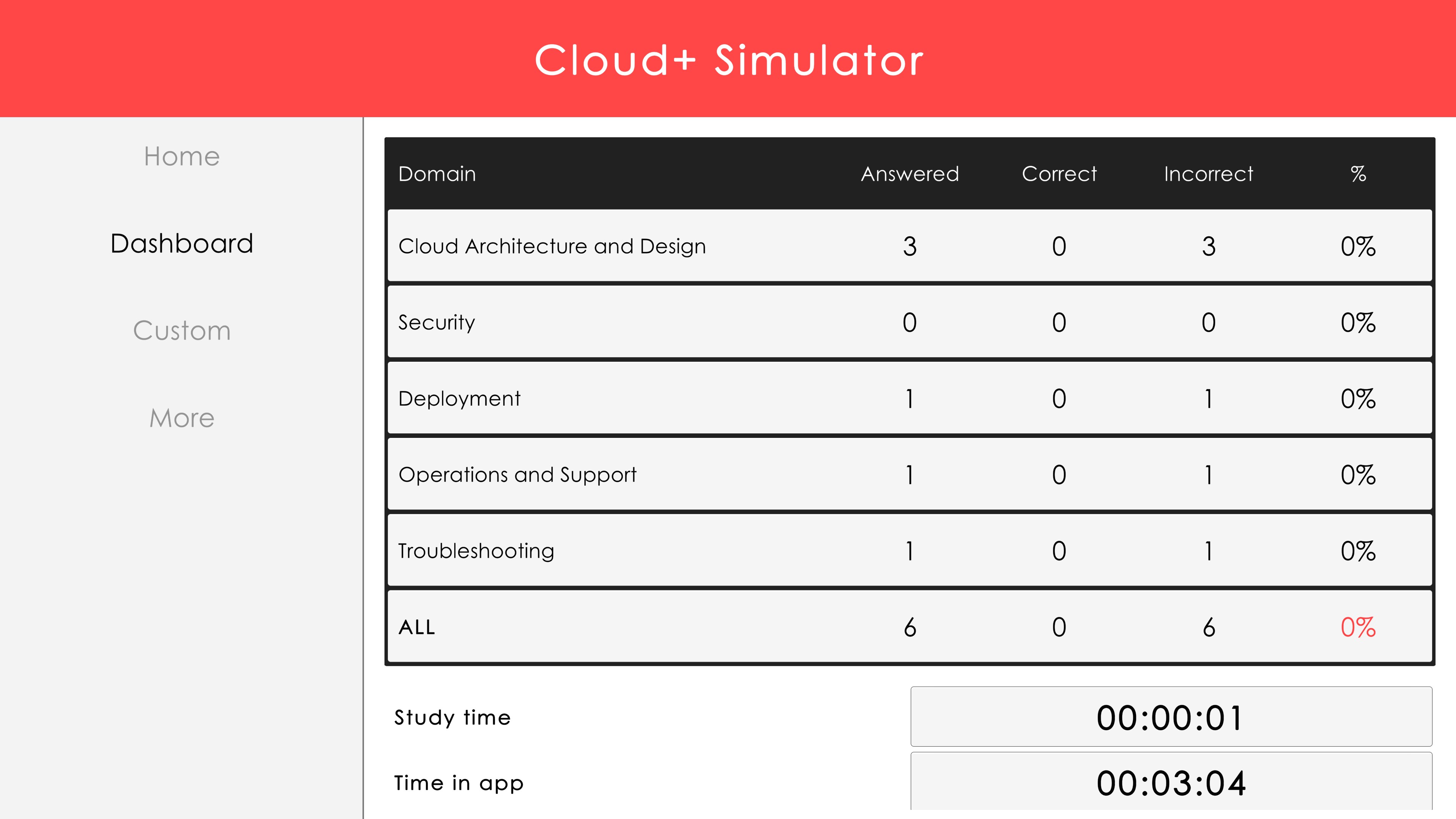 Track your progress including which domains you need to focus on, how many mock exams you've passed or failed, etc.