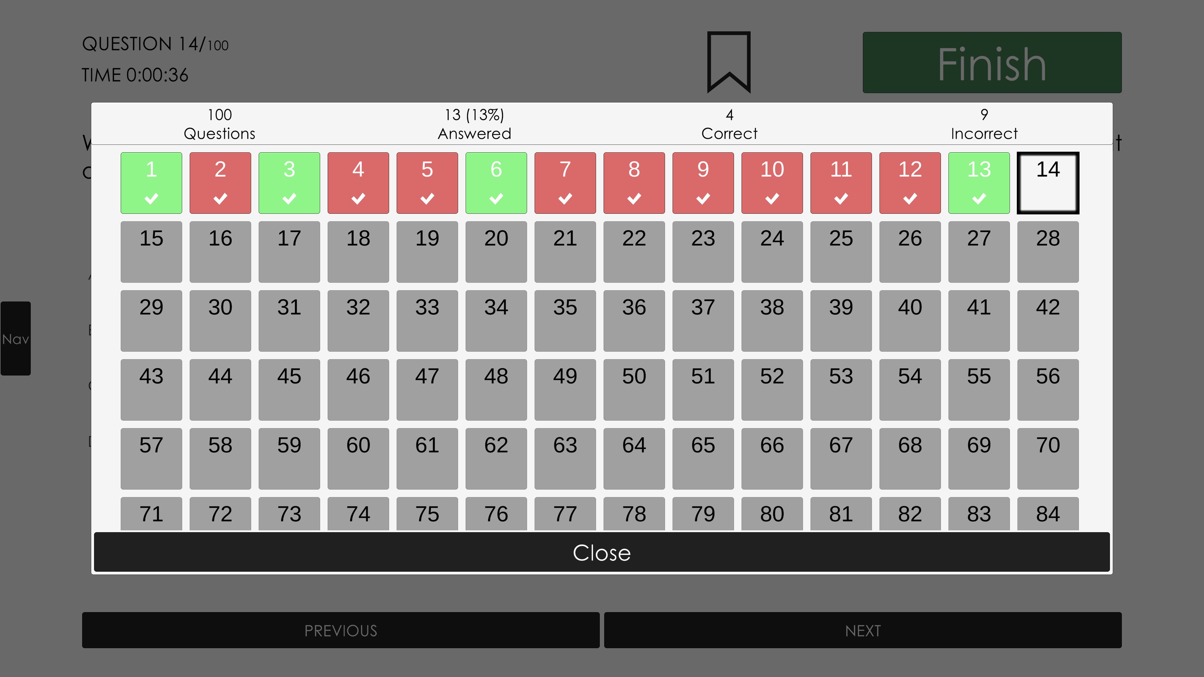 Allows you to quickly start a 5, 10, 20, 40, 50 question exam with randomized questions.