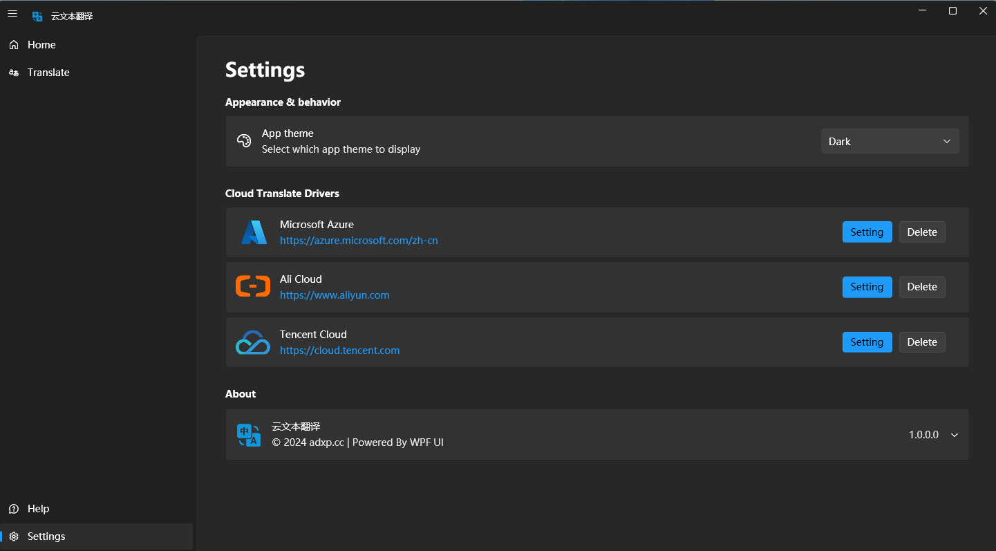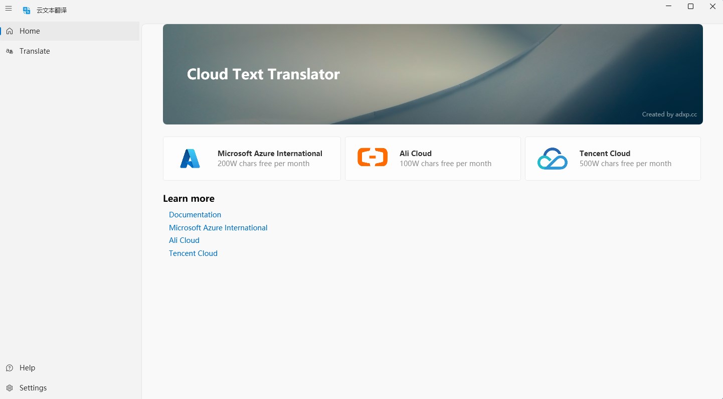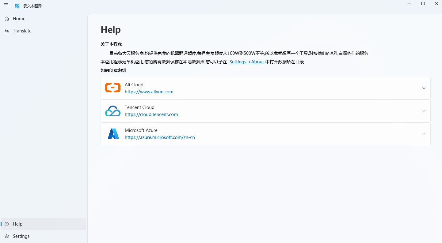 这是一款文本翻译的软件,对接的是各云服务商的API.使用者自己注册云服务商的账号即可.