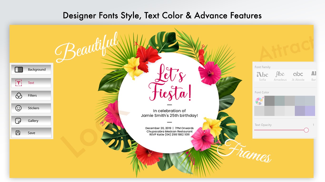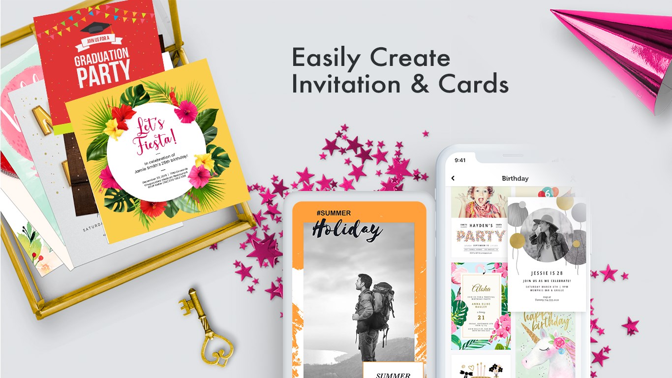 Create your own invitation card for party, birthday, wedding ceremony, engagement/ring ceremony within seconds using beautiful and professional templates.