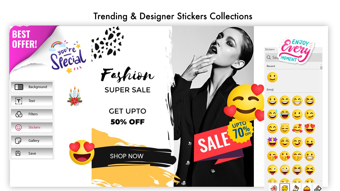 - Add wonderful stickers (specially picked for poster making)