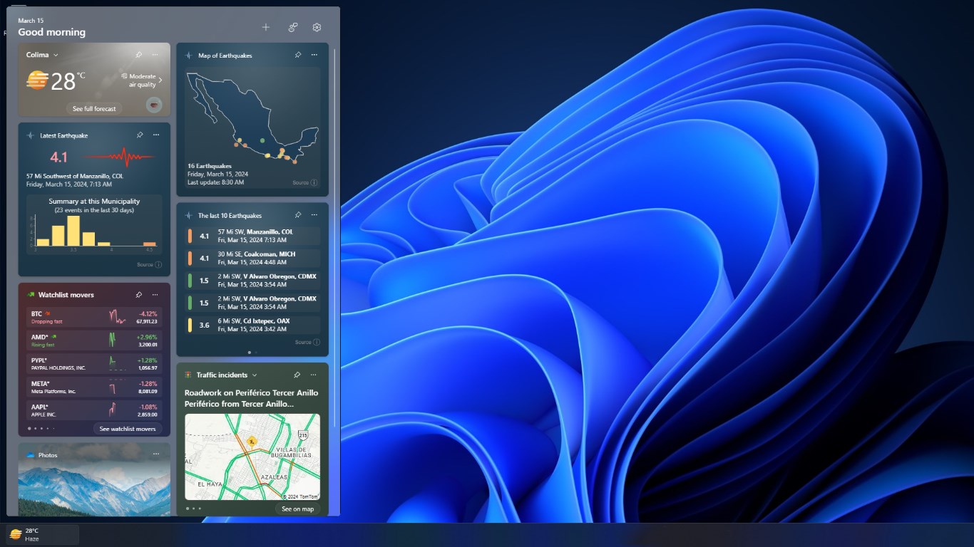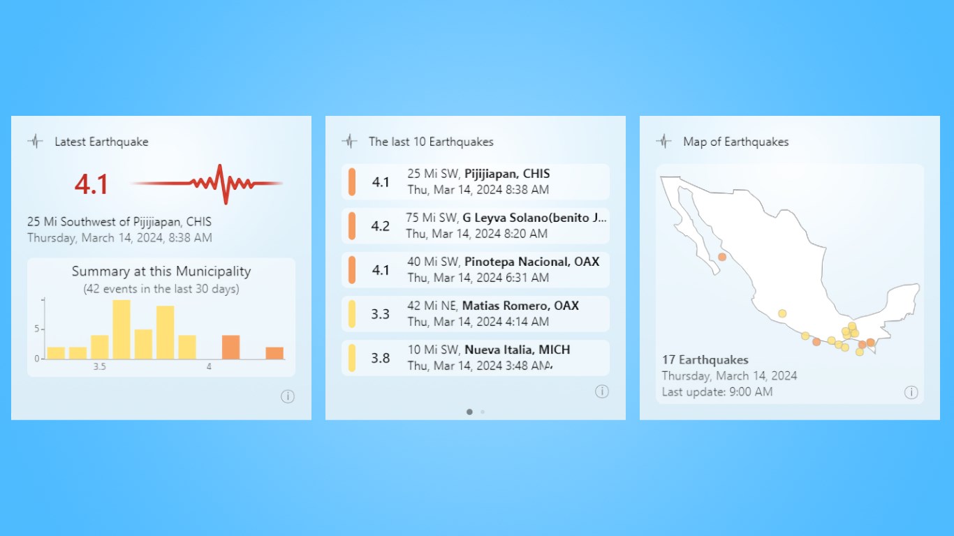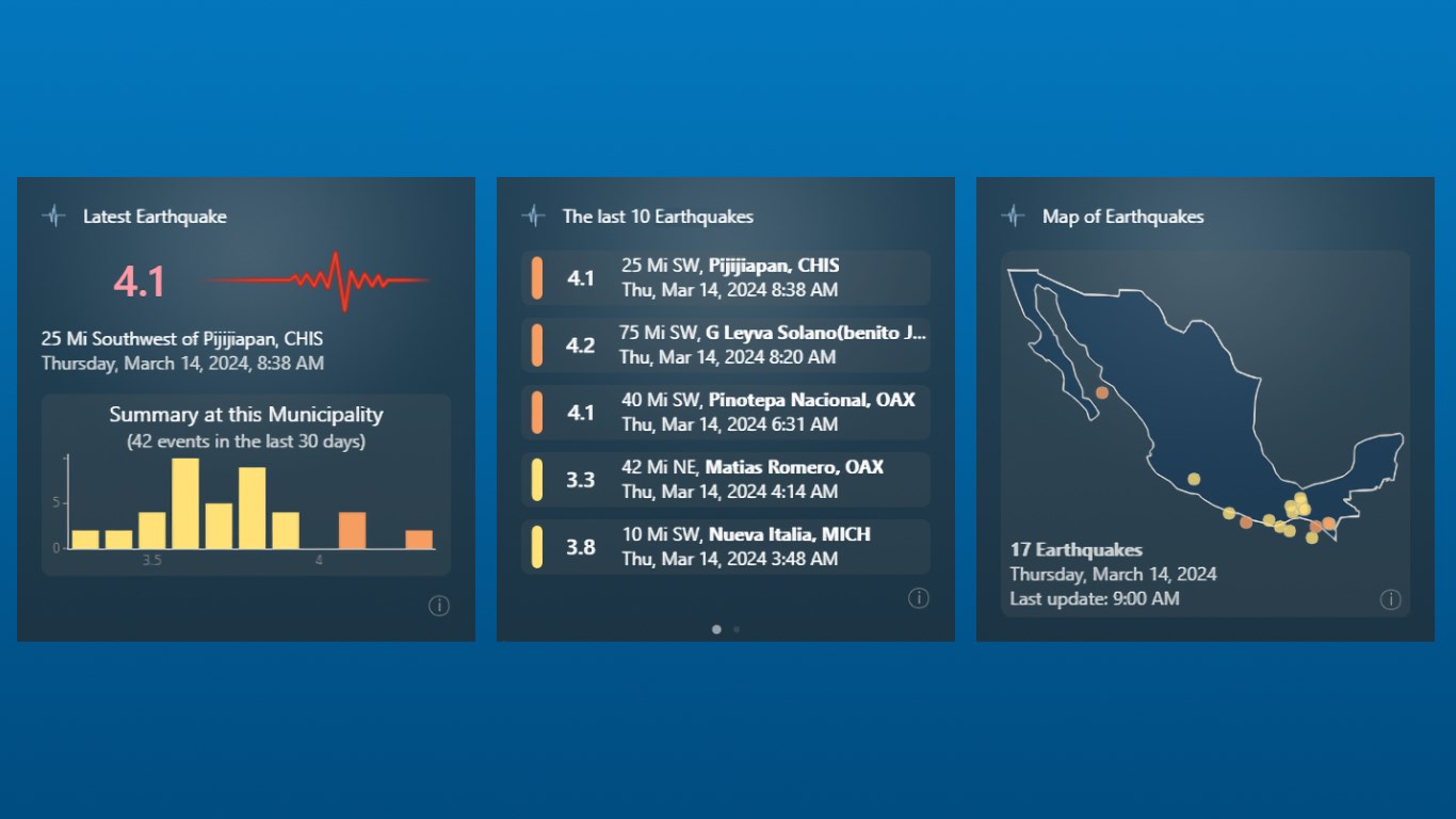 View the current status of seismic events in Mexico from your Widgets Panel in Windows 11