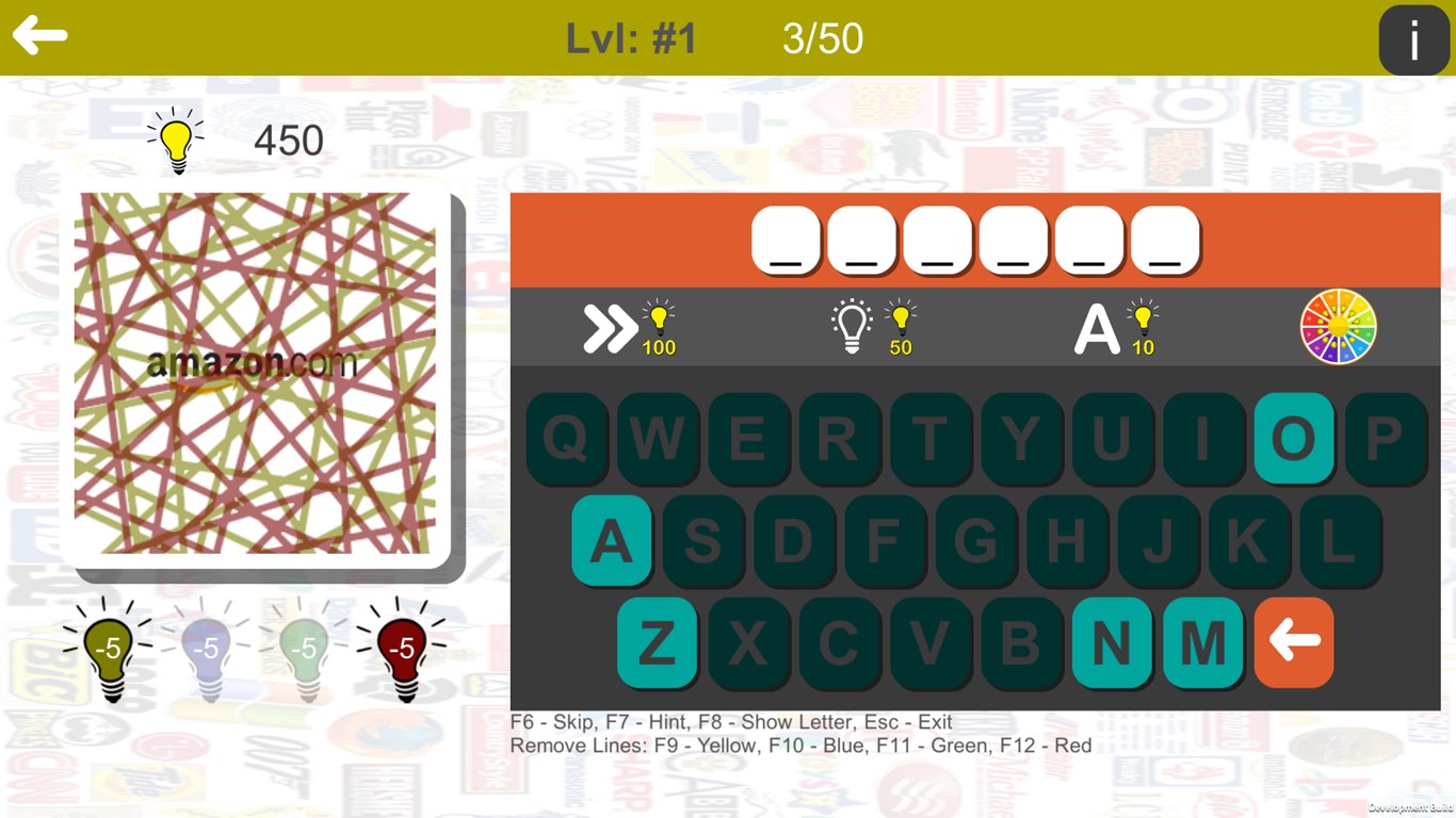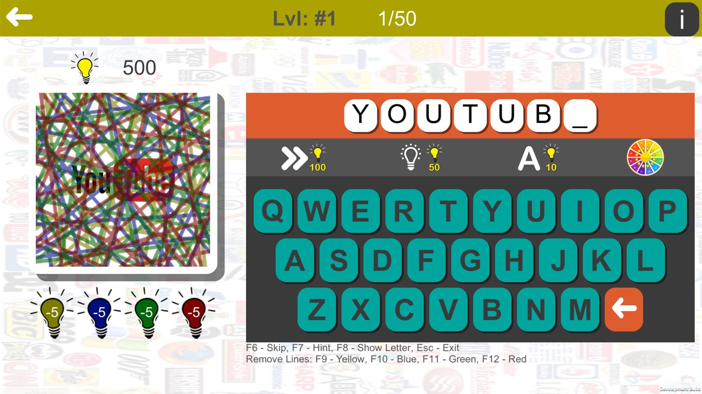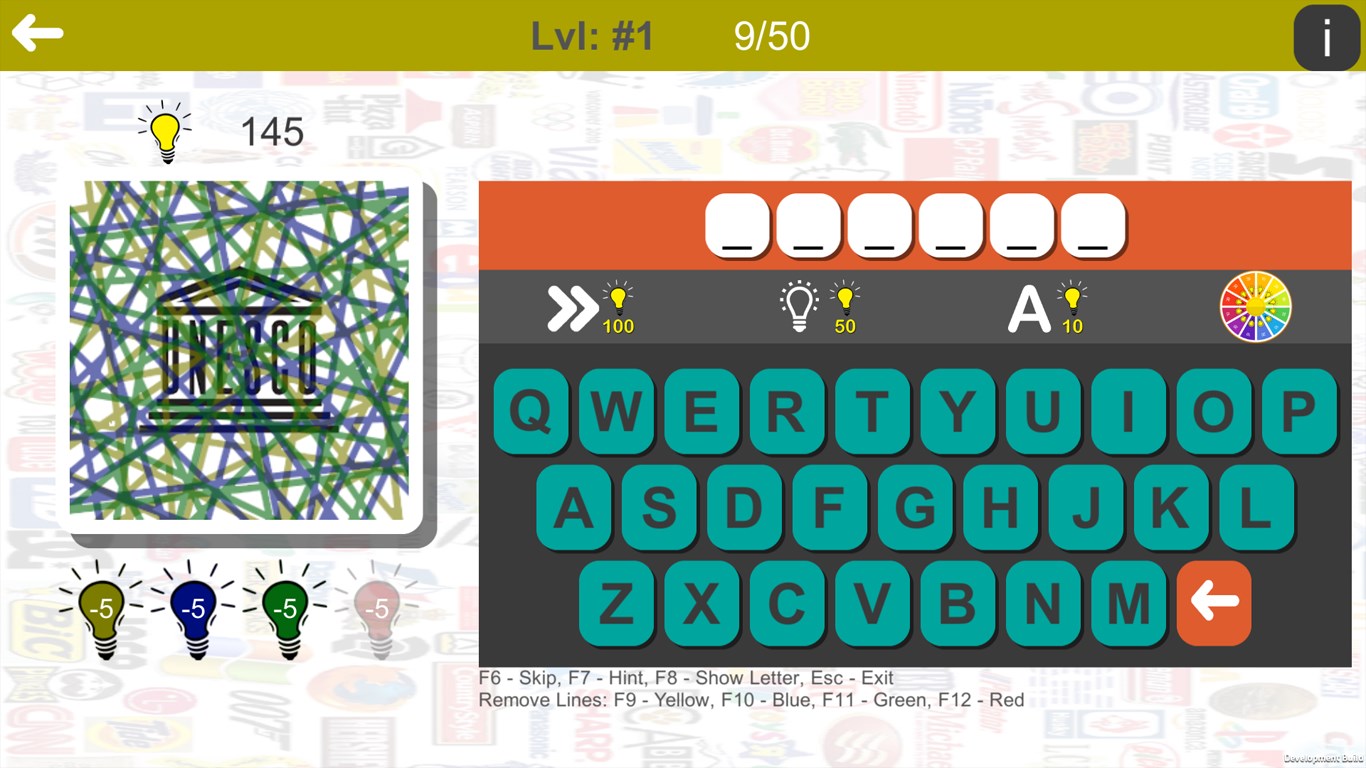 We can see many brands logos every day. Total 1800 logos for you to guess. You can share logo with fried if you unable to guess it. 36 exited levels containing 50 quizzes in each. Each logo is hidden behind the colourful lines. By using hints, you can remove lines and guess it.