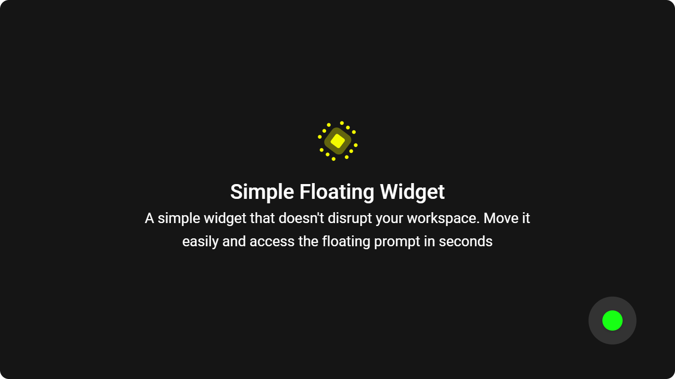 Floating widget for easy access to the AI assistant from anywhere in your workspaceInstant and seamless AI integration without disrupting your workflowSimple and clean design for an intuitive user experienceAffordable plans to suit your needs