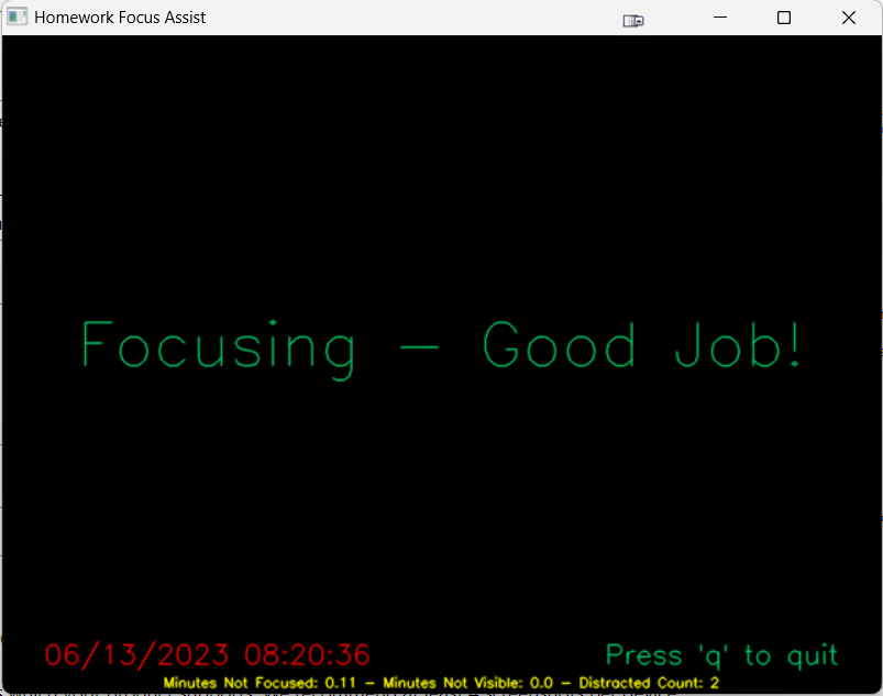 Introducing Focus Assistant, a revolutionary application that uses Artificial Intelligence (AI) and advanced computer vision to aid students, children, and professionals in improving focus and concentration. Ideal for parents keen on cultivating solid study habits in their children and professionals looking to enhance productivity, this app provides timely reminders and visual cues to keep the user's attention in check.