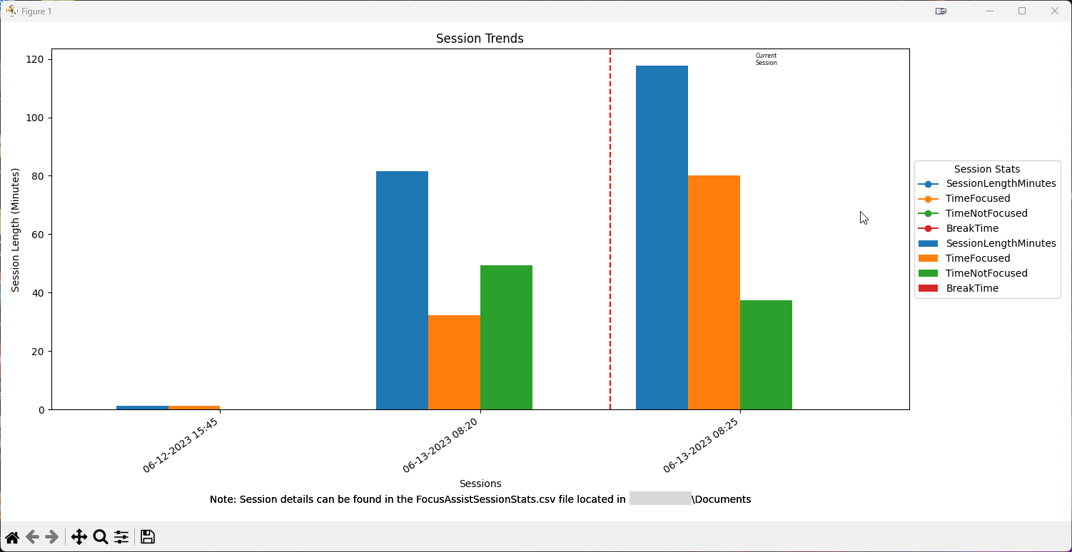 - Comprehensive Reporting: Empower yourself or your child with detailed reports and graphs showcasing session lengths, break times, focused time, and unfocused time. The historical trends provided help track and improve performance over time, making Focus Assistant a perfect tool for setting and achieving productivity goals.